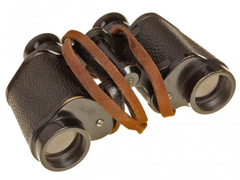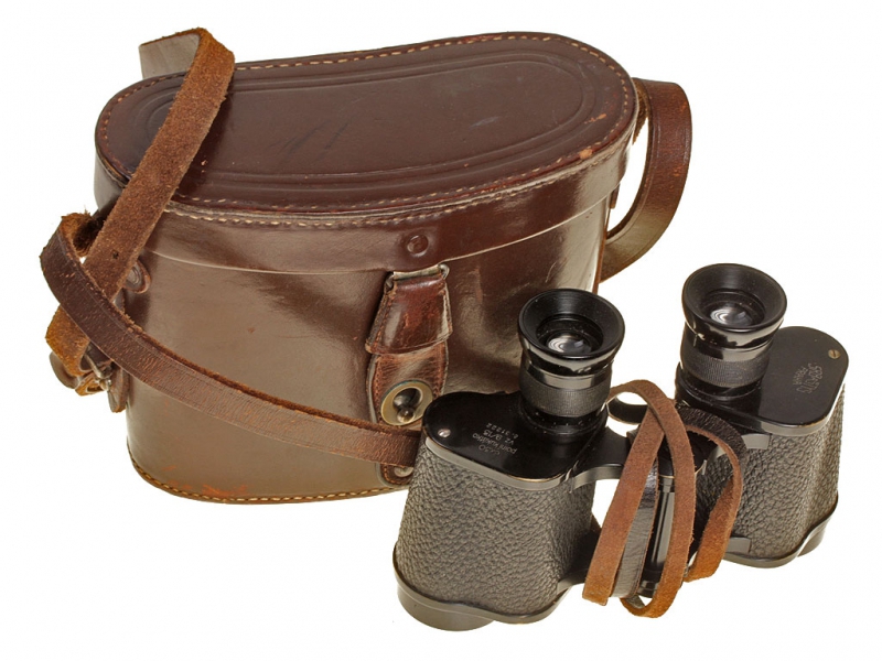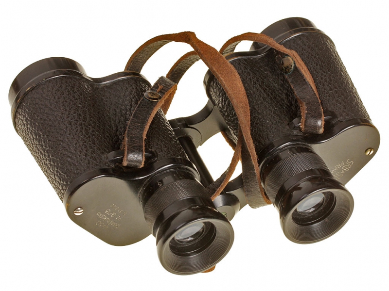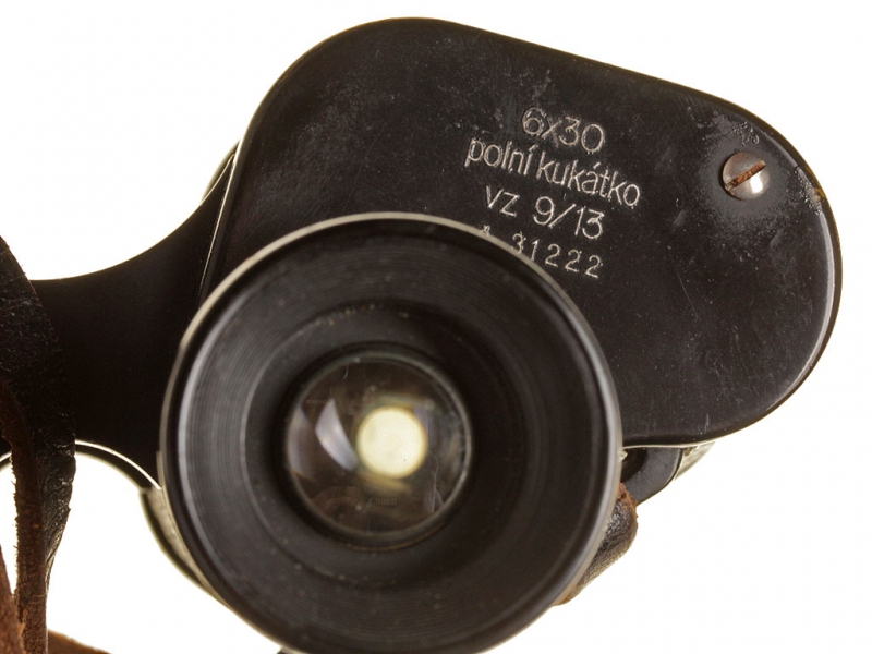 Полевой армейский бинокль чехословацкой армии в оригинальном футляре. Полностью исправная оптика с сеткой, каждый окуляр отдельно регулируется, корпус в черном красочном покрытии. На основании левого окуляра указан изготовитель "SRB a STYS PRAHA", на основании правого - название изделия "Polni kukatko" (полевой бинокль), кратность "6 Х 30", образец (vz. 9/13) и порядковый номер изделия - "31222". Имеется клеймо военной приемки и указан год выпуска - 1939. Ремешок из выкрашенной в черный цвет кожи. Бинокль помещен в темно-коричневый кофр, изготовленный в 1938 году.