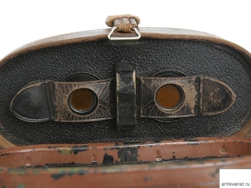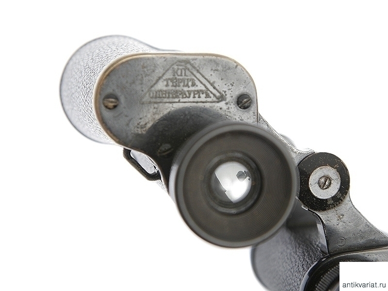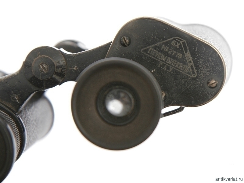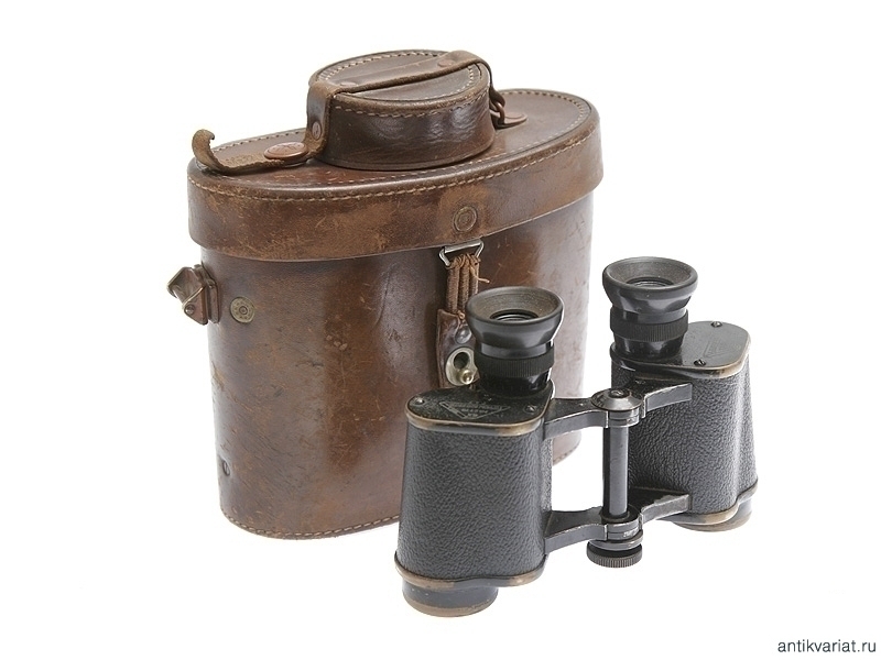 Артиллерийский полевой бинокль, изготовленный в 1915 году. На основания окуляров нанесено клеймо изготовителя - "К.П.Гёрцъ С.Петербург", наименование изделия - "6Х призм. бинокль", порядковый номер "2775" и год выпуска с указанием принадлежности к ГАУ - Главному артиллерийскому управлению. Помещен в оригинальный кожаный футляр с карманом на крышке, в который помещен компас системы капитана Адрианова.