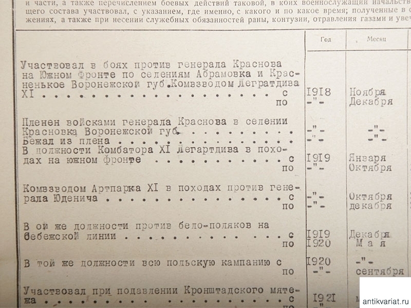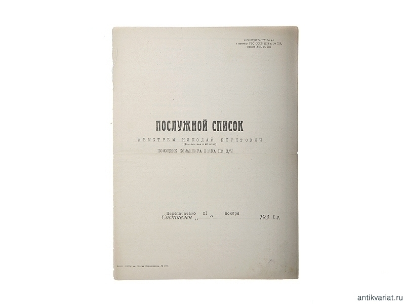 Послужной список помощника командира полка по санитарной части, датированный 1931 годом. На 14 страницах. Очень хорошее состояние.
