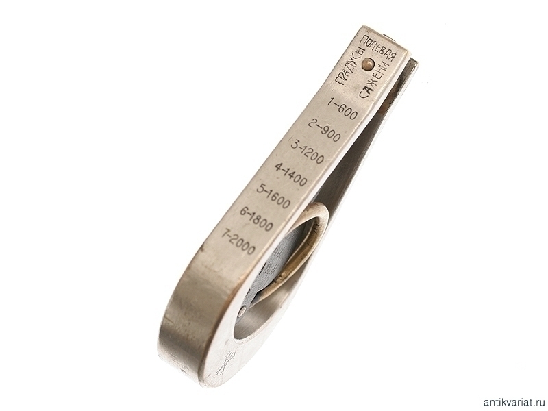 Прибор для измерения уклонов колесных дорог. На приборе имеются клейма "уклоны колесных дорог". Также на приборе выгравированы две шкалы с делениями по градусам и саженям для полевых и горных дорог. 1930е годы.