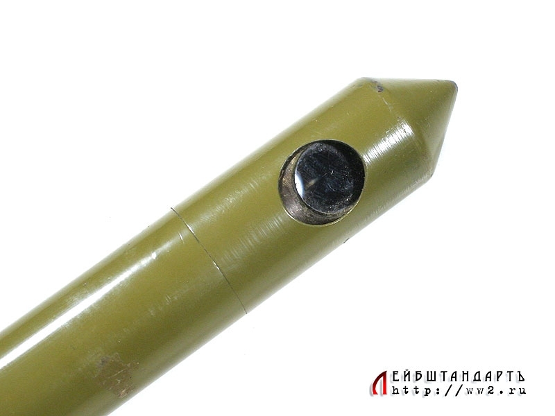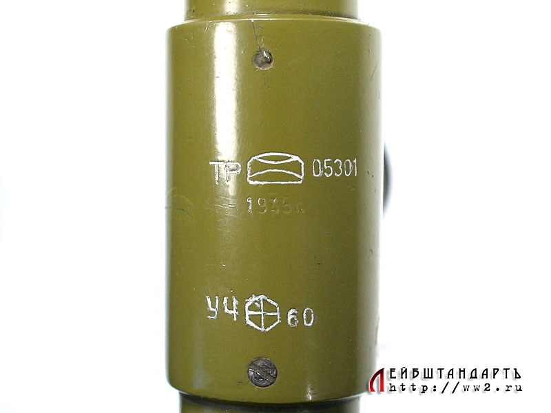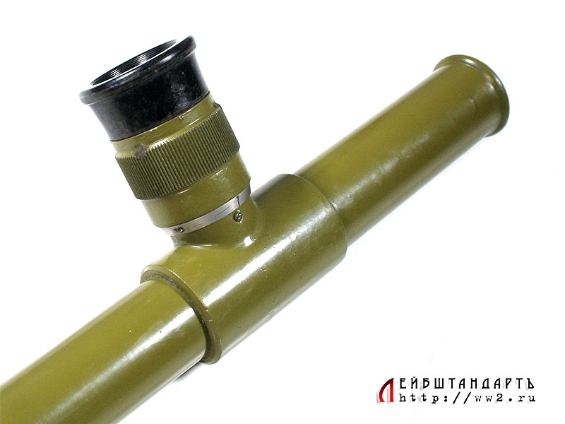Оптический прибор для наблюдения из окопа в отличном состоянии. Выкрашен краской защитного цвета, поверх которой нанесена трафаретом надпись "Учебный". Выпущен в 1945 году, оптика совершенно исправна.