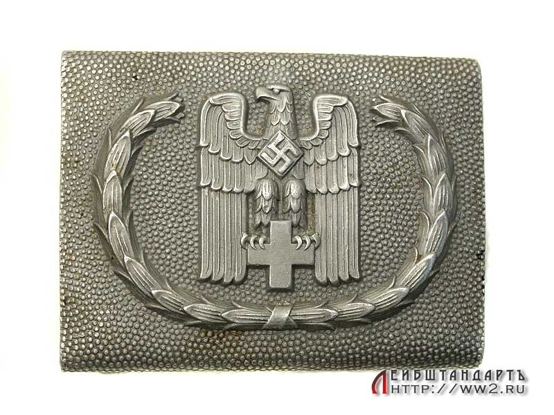 Пряжка рядового и унтер-офицерского состава медицинской службы в отличной сохранности. Изготовлена из алюминия, контррельефная. Возле ловящей части имеется клеймо защиты патента.