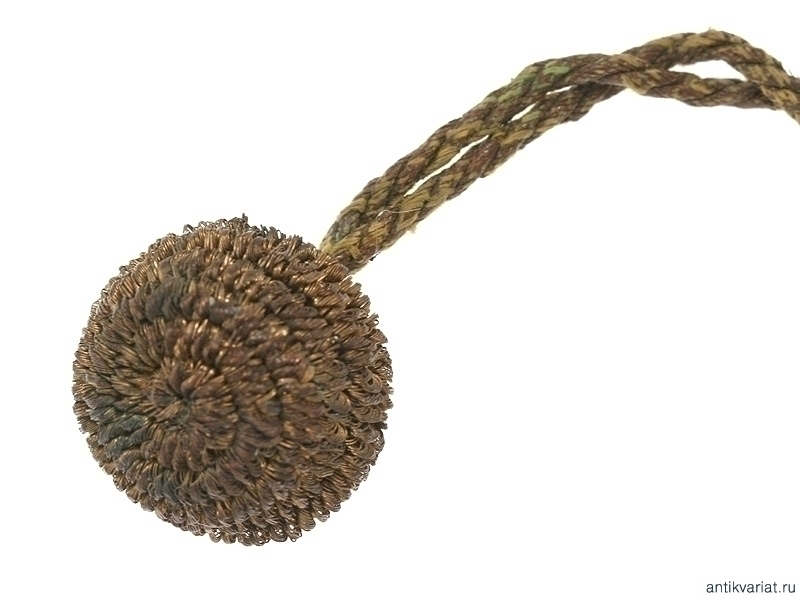 Пуговица со шнурком для офицерского горжета, плетеная из металлизированной золоченой нити. Конец XIX - начало ХХ века.