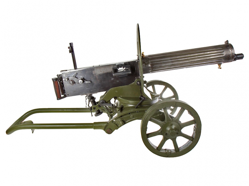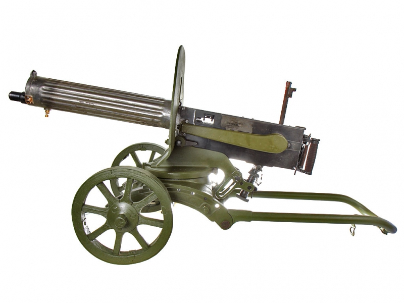 К тому времени ружье Бердана уже было снято с вооружения, и пулеметы Максима были приспособлены к калибру русской трехлинейки Мосина: 7,62 мм.