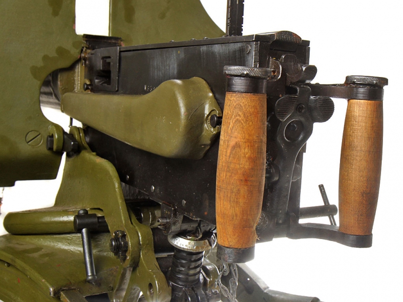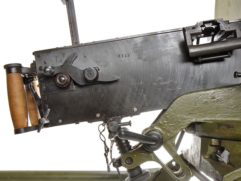 Штатным станком для русского пулемета Максима стал колесный станок системы Соколова, комплектовавшийся стальным защитным щитом (массой около 11 кг), а в период до Первой Мировой – еще и парой складных ног, позволявших при необходимости поднять линию стрельбы. Станок Соколова допускал стрельбу только по наземным целям. В 1939 году к пулемету Максима был дополнительно принят универсальный колесный станок Владимирова, допускавший ведение огня как по наземным, так и по воздушным целям. У станка Владимирова U-образный хобот станка был заменен на три трубчатых опоры, в походном положении или в положении для стрельбы по наземным целям складывавшихся в единый хобот. В положении для стрельбы повоздушным целям эти три опоры разъединялись и раскладывались в зенитную треногу, а колеса и щит отсоединялись. Нужно отметить, что стальные щиты станков расчетами пулеметов зачастую снимались, что позволяло заметно облегчить оружие и несколько снизить его заметность.