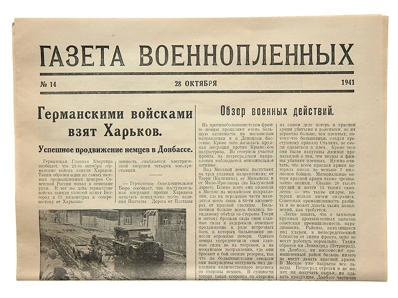 "Газета военнопленных" - №14 от 28 октября 1941 года. На русском языке, содержит сводки с фронтов и ознакомительные материалы для советских военнопленных.