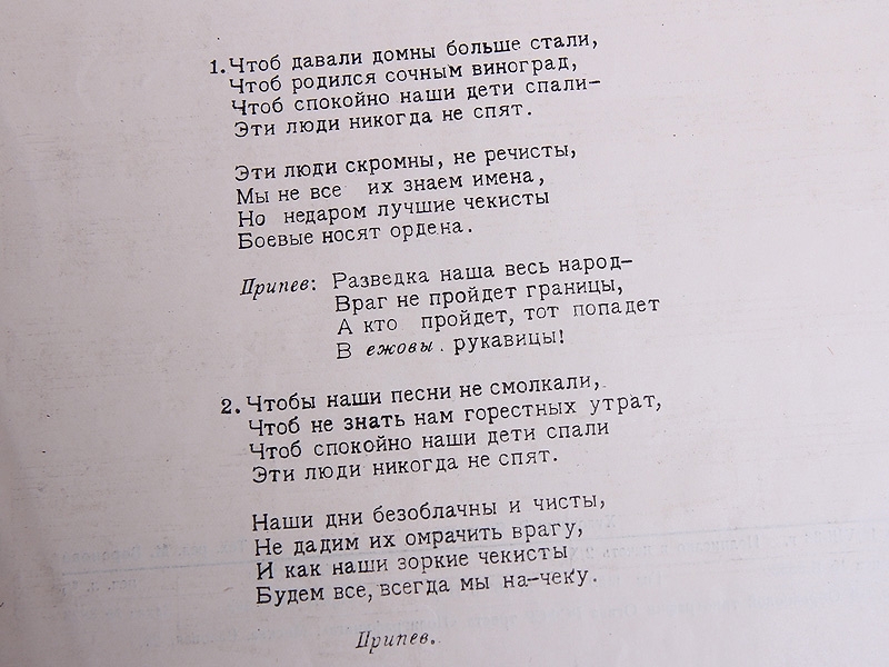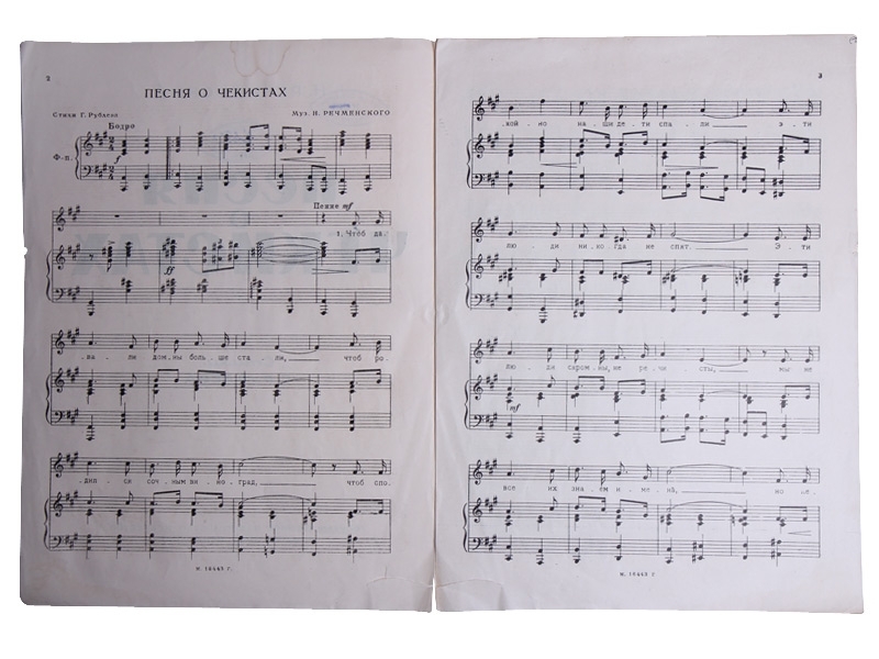 Брошюра "Песня о чекистах": музыка Н.Речменского, стихи Г.Рублева. Государственное издательство "Искусство", 1938 год.