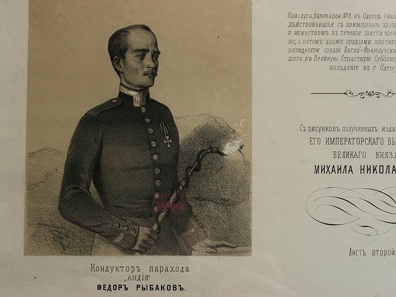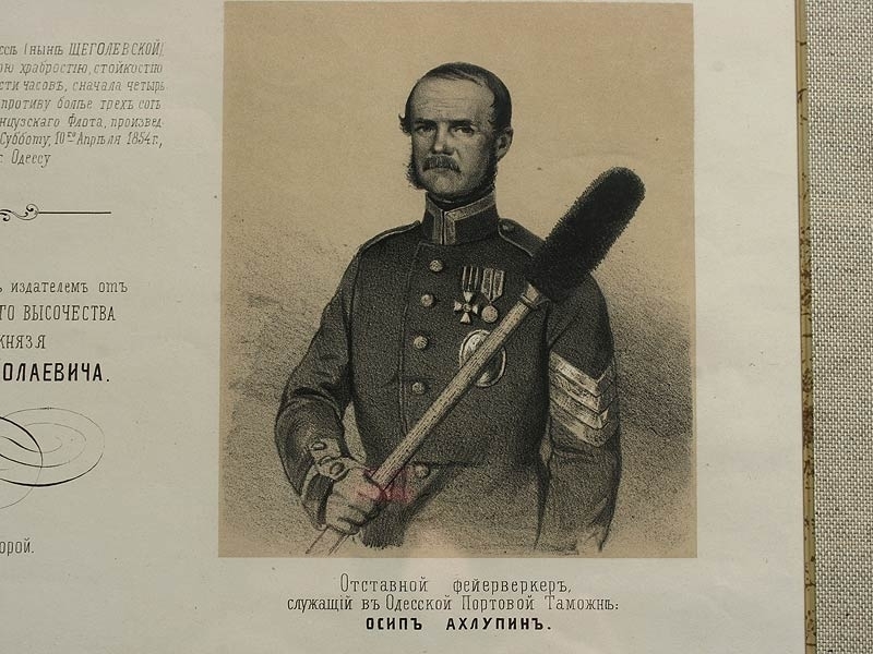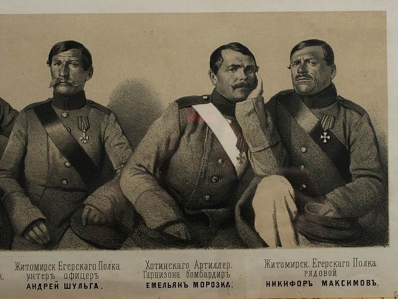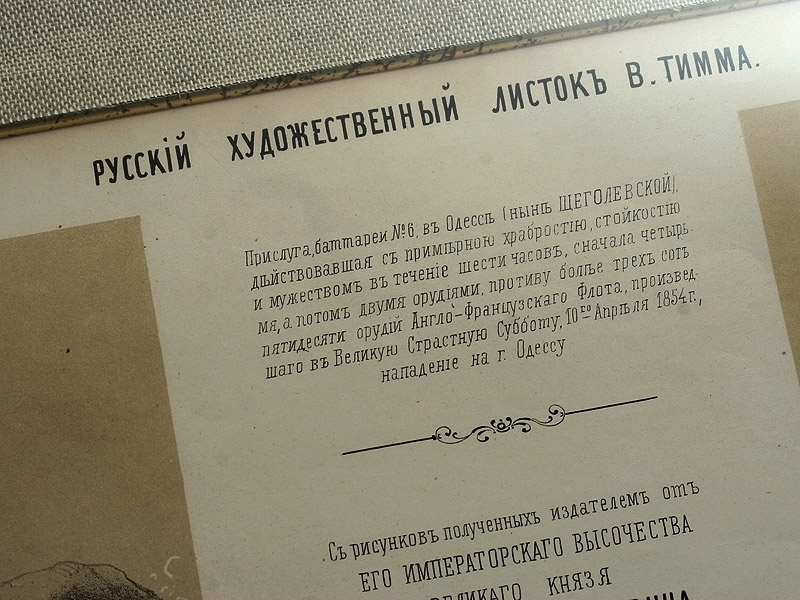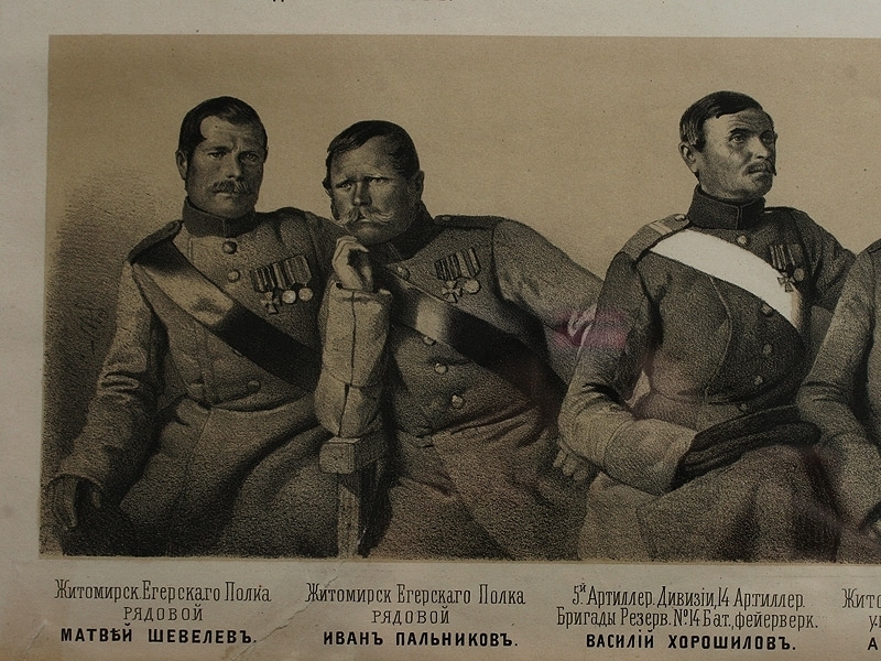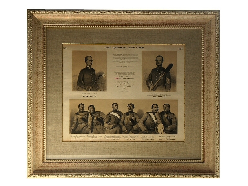Русский художественный листок, датированный 1854 годом и посвященный героям Крымской войны - Георгиевским кавалерам. Отличное состояние, оправлен в высококачественный современный багет.