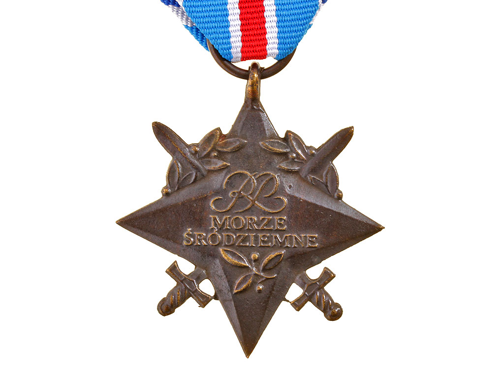 Награда за службу в польских миротворческих силах в Средиземноморье (Gwiazda "Morze Srodziemne"). Томпак, на оригинальной ленте.