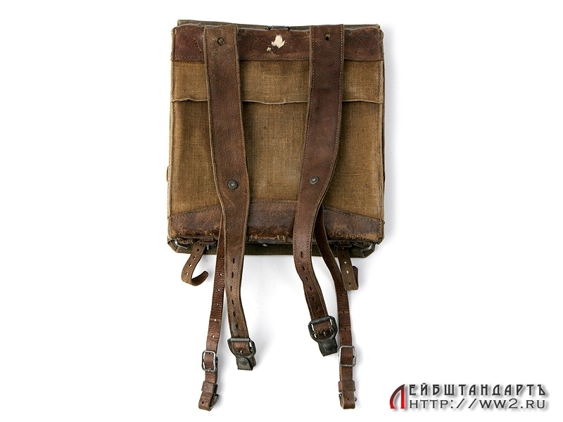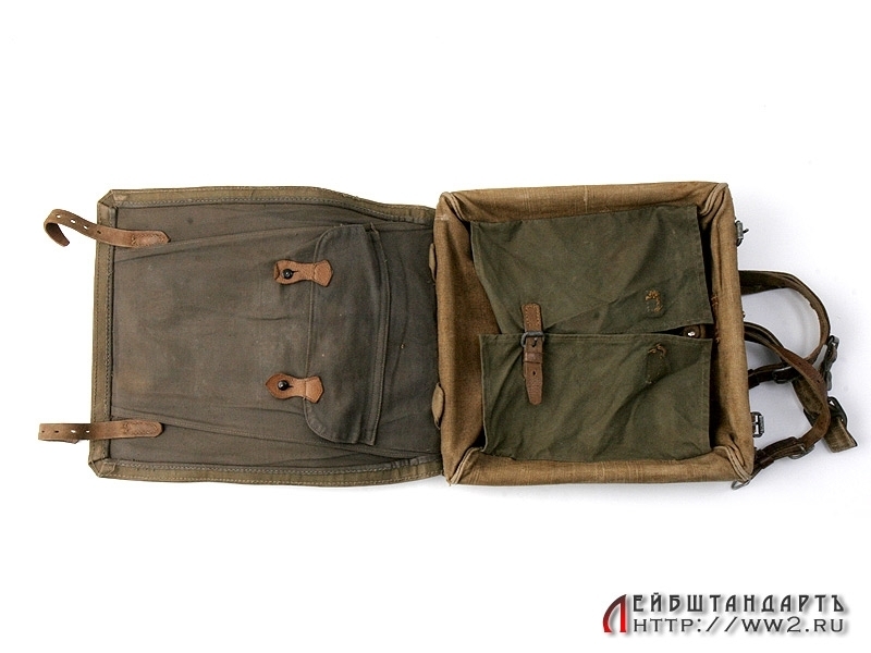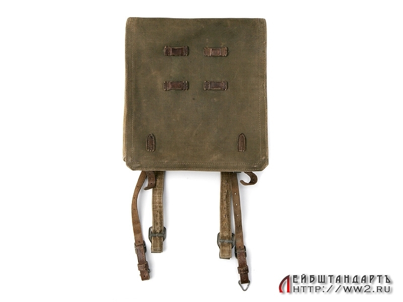 Походный ранец РККА образца 1936 года. Отличное состояние, брезент не осыпавшийся, что является основной болезнью этих ранцев. Есть утрата одного внутреннего ремешка, на сером материале стоит чернильное клемо. Оригинальные лямки, также без повреждений. Супер редкий предмет походного довоенного снаряжения Красной армии.