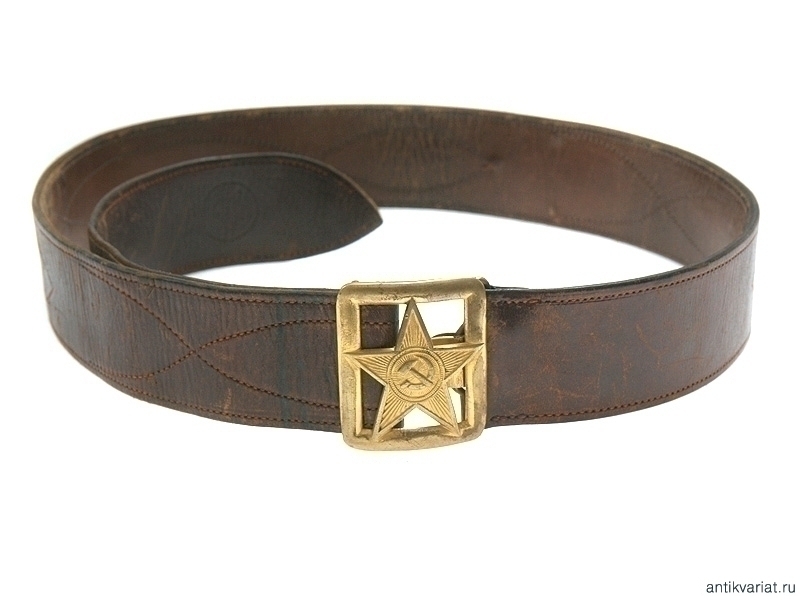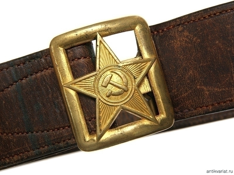 Ремень командира РККА 1940-х годов выпуска. Прорезная латунная пряжка со звездой, отличное состояние.