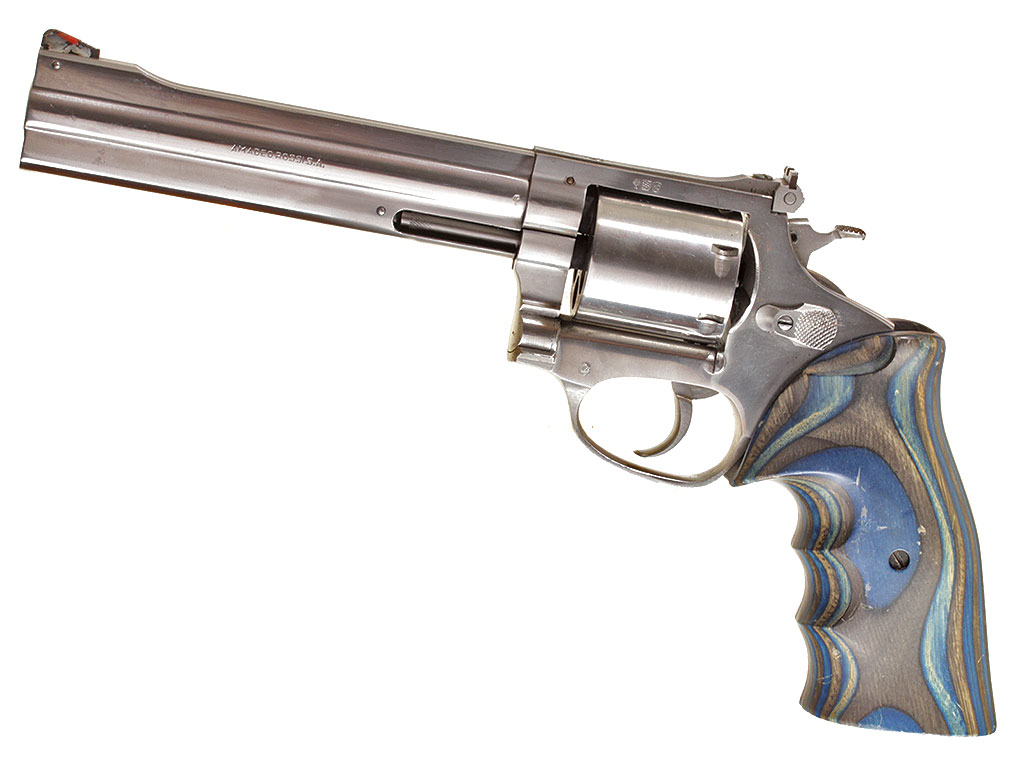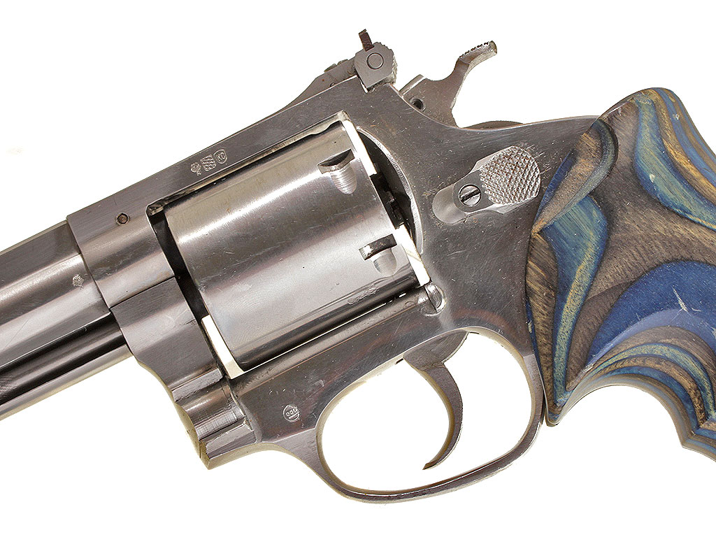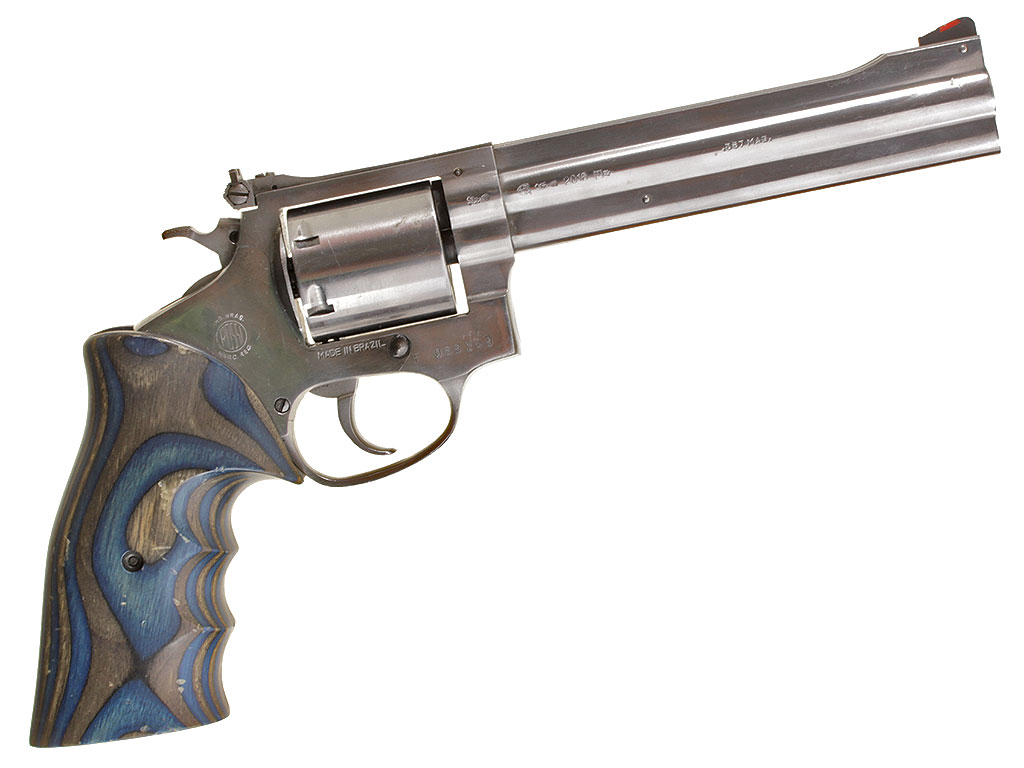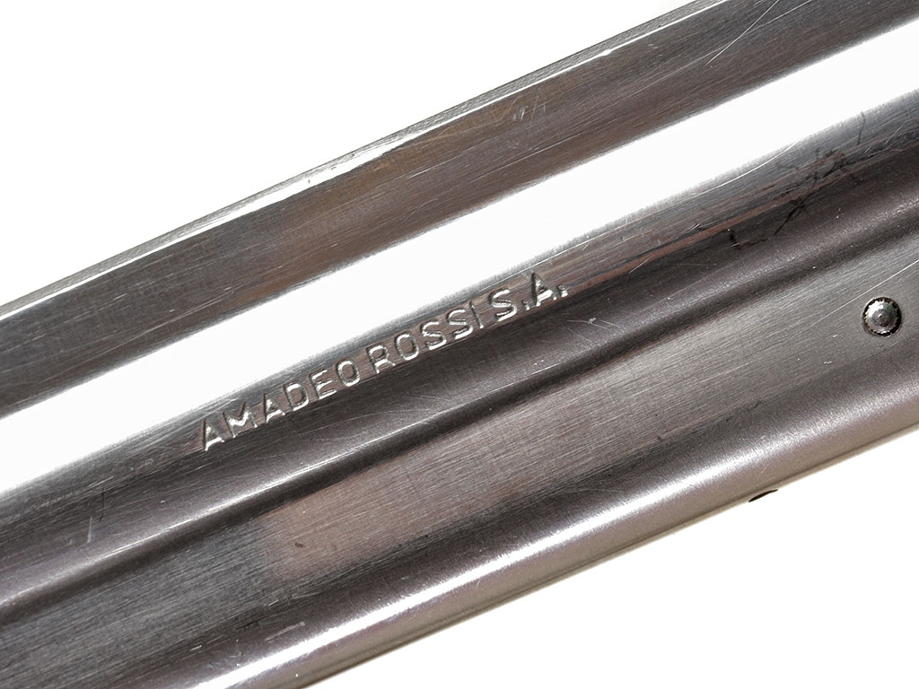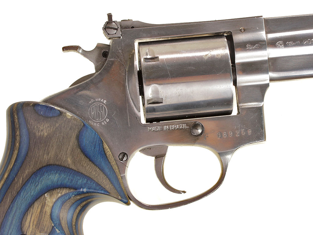 6-зарядный револьвер калибром .357 Magnum, изготовленный бразильской фирмой "Amadeo Rossi". Модель M.845 из нержавеющей стали.