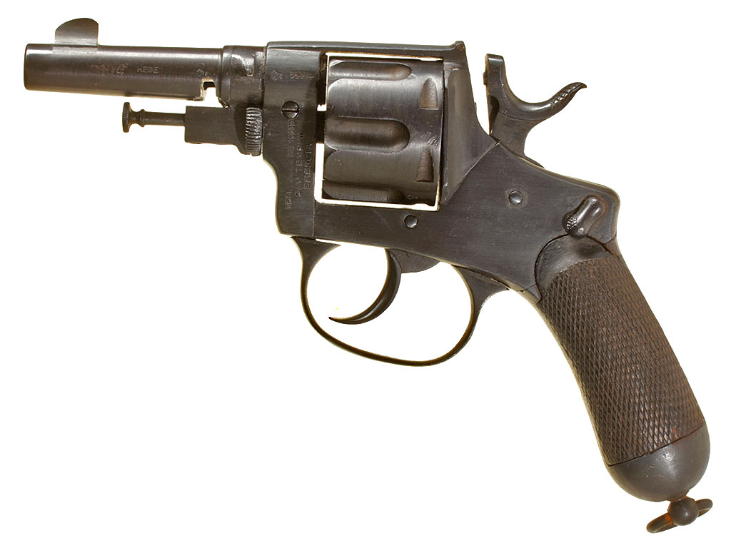 Конструкция: Ствол привинчен к рамке, барабан заряжается через откидывающуюся дверцу. Поочерёдное экстрактирование стреляных гильз происходило благодаря шомполу, который в нерабочем состоянии размещался в полой центральной оси барабана и переводился в рабочее положение с помощью поворотного устройства, смонтированного на стволе (аналогично револьверам системы Нагана). Зарядная дверца соединена с курком (так называемая дверца Абади. При открывании отключает курок, позволяя использовать спусковой крючок только для поворотов барабана). Прицельные приспособления состоят из мушки и целика в виде прорези. Щечки рукоятки сделаны из дерева (орех) или эбонита.