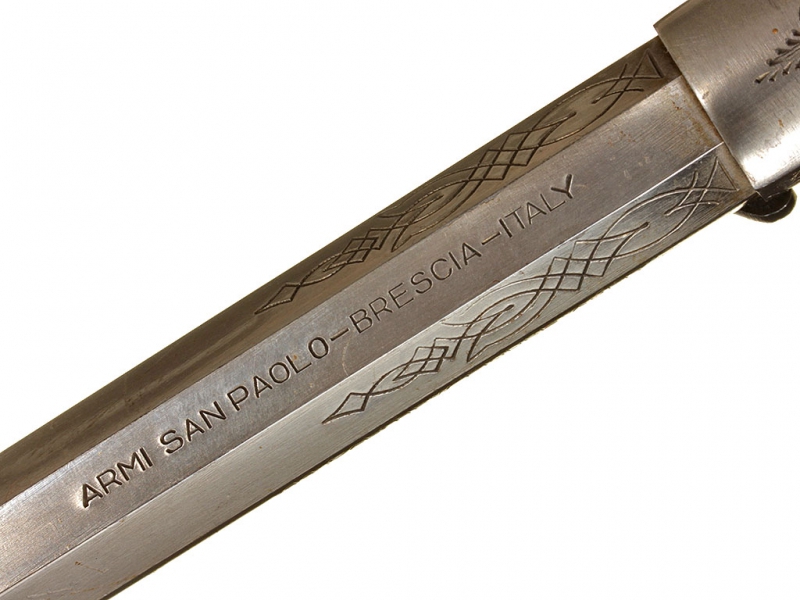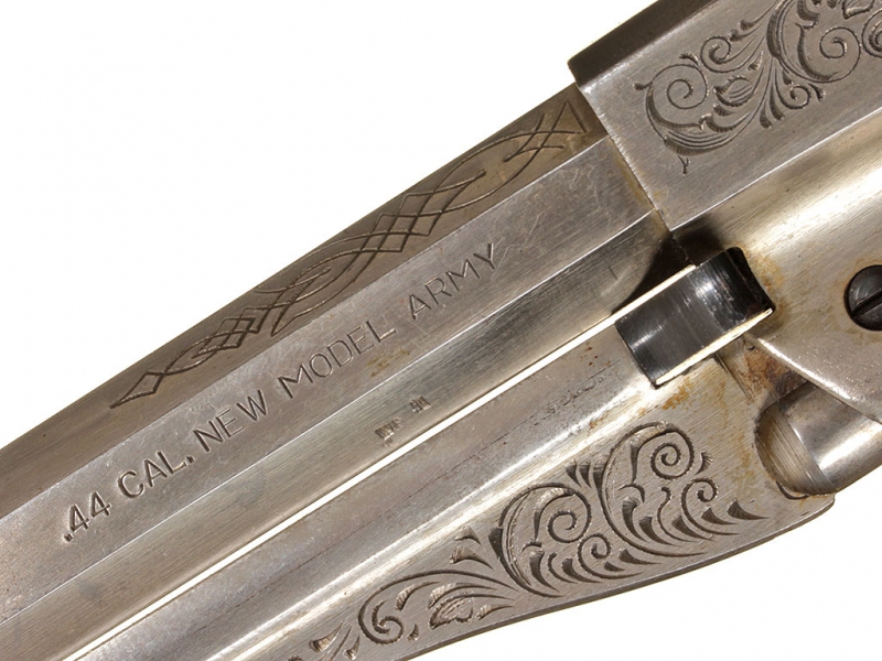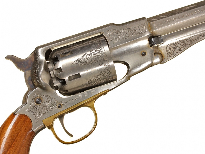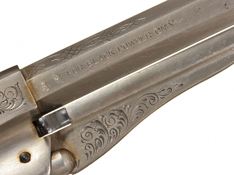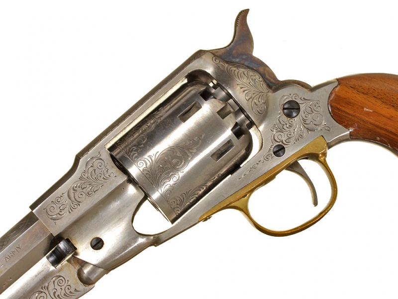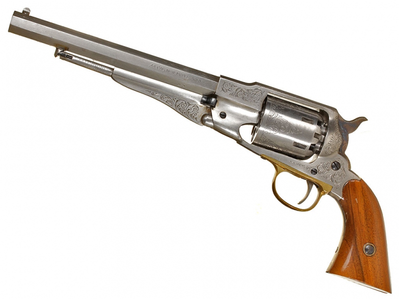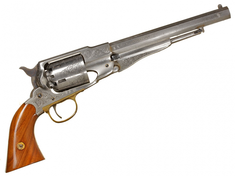 Капсюльный револьвер системы Кольта (практически копирующий модель "Кольт Нэви" (Colt Navy) - продукция компании "Armi San Paolo". Представляет собой классический 6-зарядный револьвер 44-го калибра, на боковых плоскостях восьмигранного ствола хорошо читаемые клейма ".44 Cal. New Model Army / For black powder only", на верхней плоскости ствола - клеймо изготовителя: "Armi San Paolo - Brescia - Italy. Оригинальные деревянные щечки рукояти, револьвер в отличной сохранности.