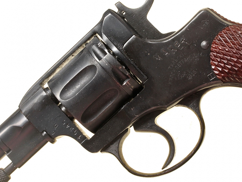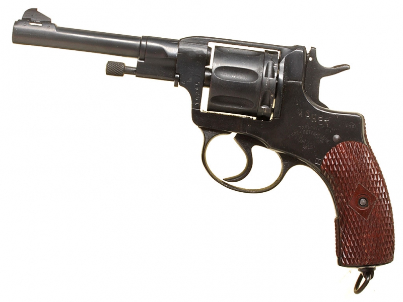 Револьвер системы Наган выпуска 1915 года, изготовленный на Тульском Императора Петра Великого оружейном заводе. Складское ремонтное состояние (ранее заменялись мушка и щечки рукояти).