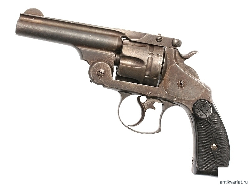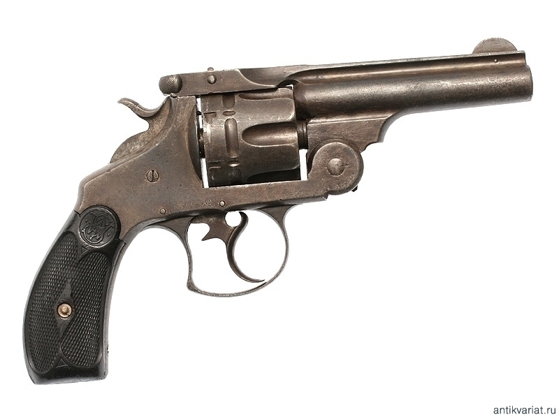 Револьвер системы "Смит и Вессон" образца 1880 года, полицейская модель. Вороненый, слегка вытертый корпус, бакелитовые накладки рукояти. Револьвер полностью исправен, прилагаются документы Россвязьохранкультуры.