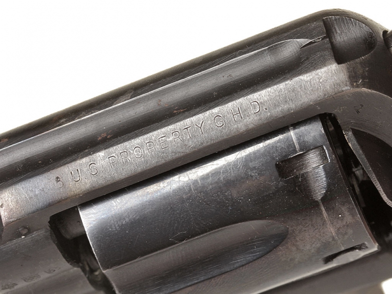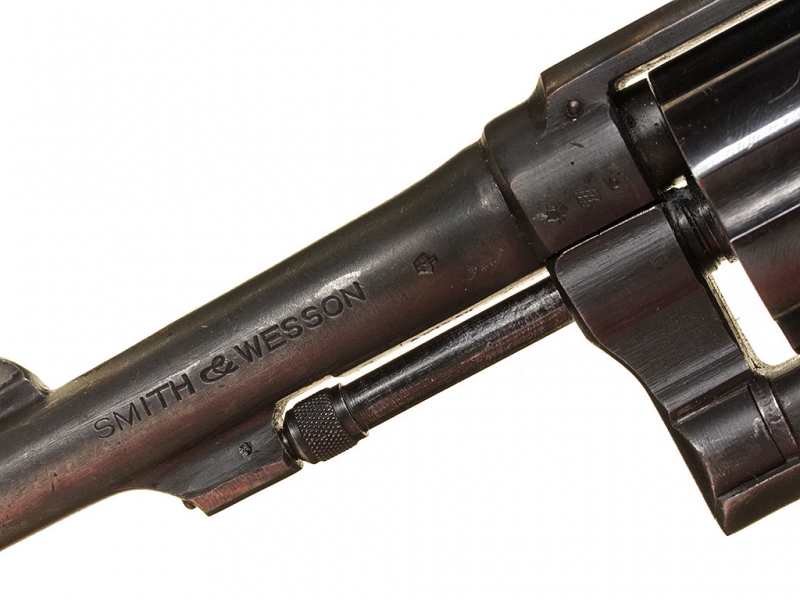 Револьвер, изготовленный фирмой Смит и Вессон, модель "Military & Police". Изготовлен в годы Второй мировой войны (маркировка "V" перед порядковым номером) под патрон 38.Special. Хорошее состояние, оригинальное воронение. После войны продавался на гражданском рынке огнестрельного оружия, имеются послевоенные немецкие клейма.