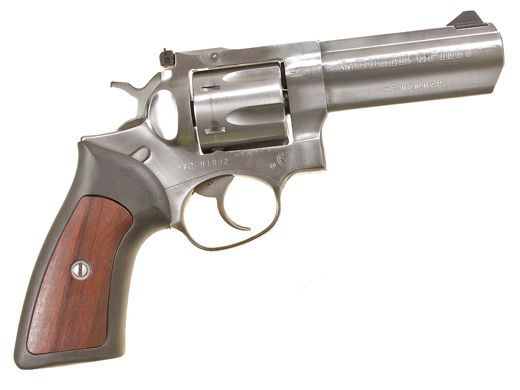 Револьвер GP100 был представлен компанией Sturm, Ruger & Co., Inc. в 1985 году, заменив старый модельный ряд и находится в производстве в настоящее время. Револьверы Ruger вообще и модель GP100 в частности представляют собой высококачественное оружие с большим служебным ресурсом, высокой точностью стрельбы, отличной надежностью и при этом имеют умеренную стоимость. Именно сочетание вышеназванных качеств определило популярность револьверов Ruger как у рядовых граждан, приобретающих себе револьверы для ношения в целях самообороны, занятий стрелковым спортом и охоты, так и у полицейских и сотрудников частных охранных агентств. GP100 и другие револьверы данного производителя имеют откидные влево для заряжания, разряжания и экстракции стреляных гильз барабаны. Благодаря особому расположению фиксационных выемок, смещенных в сторону от камор барабана, оружие может использовать патроны повышенной мощности. Барабан в закрытом положении фиксируется в двух точках. Защелка барабана, расположенная за барабаном на левой стороне рамы фиксирует барабан за тыльную часть оси экстрактора в закрытом положении. В передней части барабан фиксируется в закрытом положении при помощи защелки, размещающейся в откидном кронштейне барабана. Ударно-спусковой механизм куркового типа, двойного действия, с открытым расположением курка и размещенным в раме ударником. УСМ выполнен съемным, он собран в отдельный блок для быстрого отделения от рамы и более легкой чистки в полевых условиях. Безопасность в обращении обеспечивает передаточный рычаг, который допускает контакт курка с ударником поднимаясь во время нажатия спуска, благодаря чему выстрел возможен только при полностью выжатом спусковом крючке. Боевая пружина, располагающаяся в рукоятке, выполнена витой. Прицельные приспособления состоят из съемной мушки, регулируемой по горизонтали, и регулируемого в двух плоскостях целика. Щечки рукоятки из твердой синтетической резины с деревянными вставками. Оружие изготавливается из нержавеющей стали с последующей матовой обработкой и легированной стали с воронением.