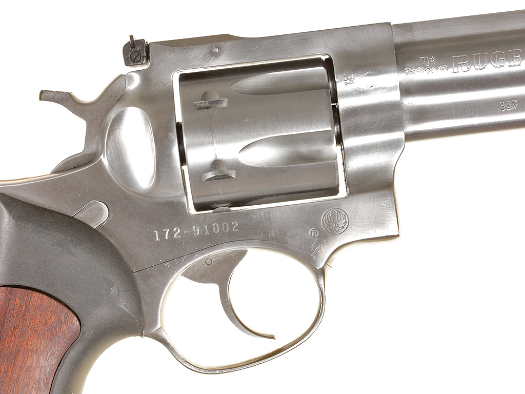 Шестизарядный револьвер Ругер, модель GP 100 калибром .357 Magnum. Полностью изготовлен из нержавеющей стали, отличное состояние.