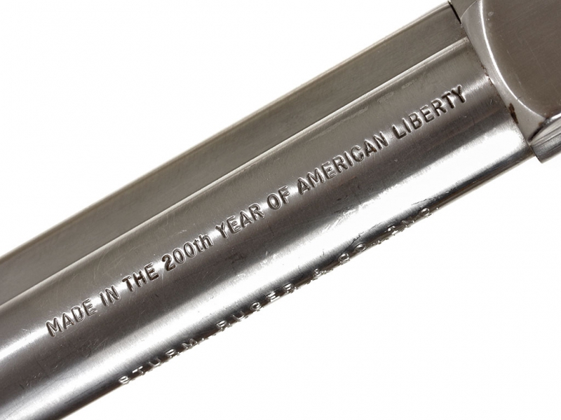 Шестизарядный револьвер Ругер калибром .22 Lr, изготовленный полностью из нержавеющей стали к 200-летнему юбилею независимости США. Отличное состояние.
