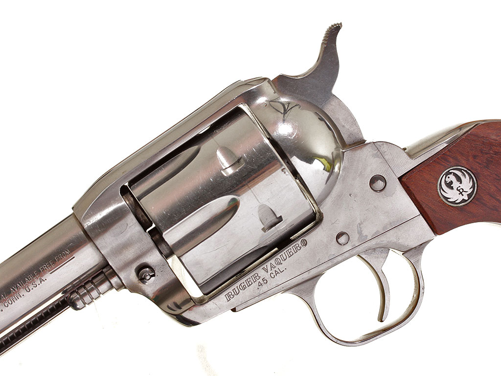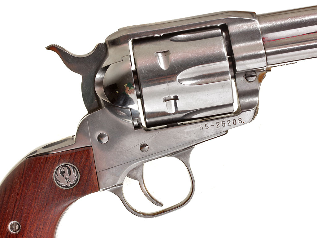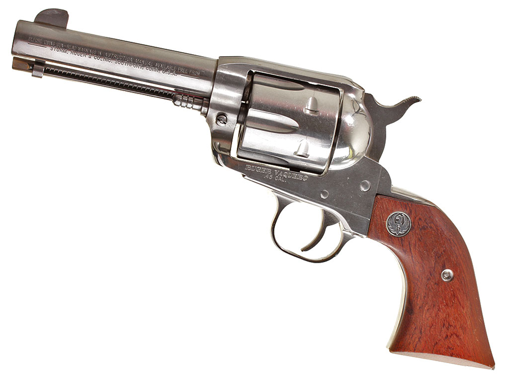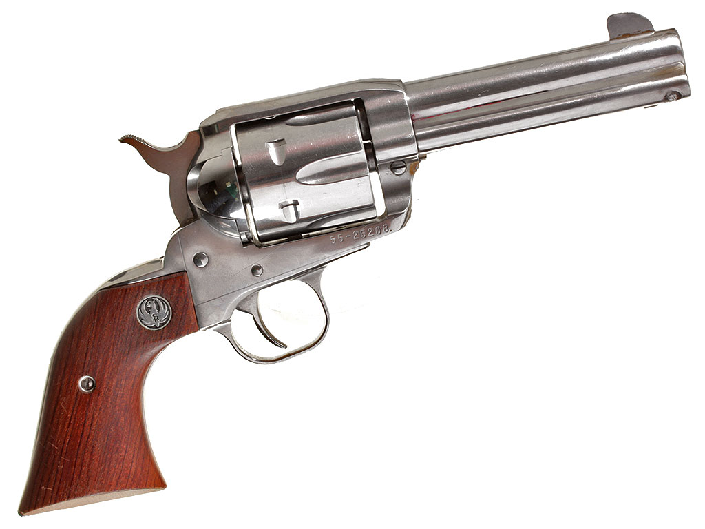Шестизарядный револьвер Ругер калибром .45, изготовленный полностью из нержавеющей стали. Отличное состояние.