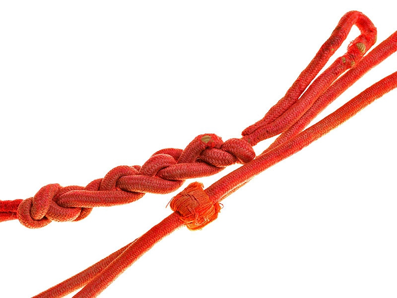 Револьверный шнур, первая половина 1910-х годов. Шнур данного цвета применялся в полиции, первых полках пехоты и артиллерии. Оригинально заплетен владельцем (шнуры заплетались подобным образом, чтобы укоротить их длину сообразно росту).
