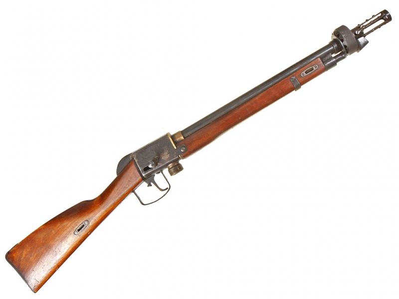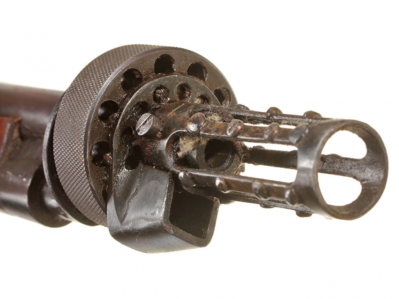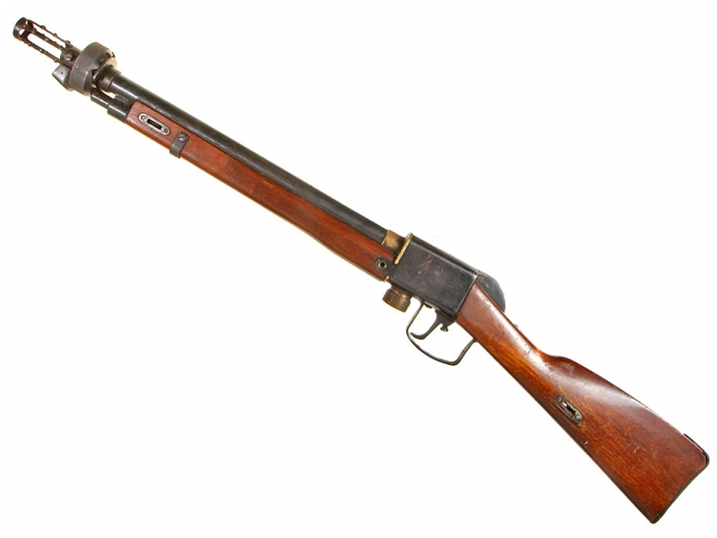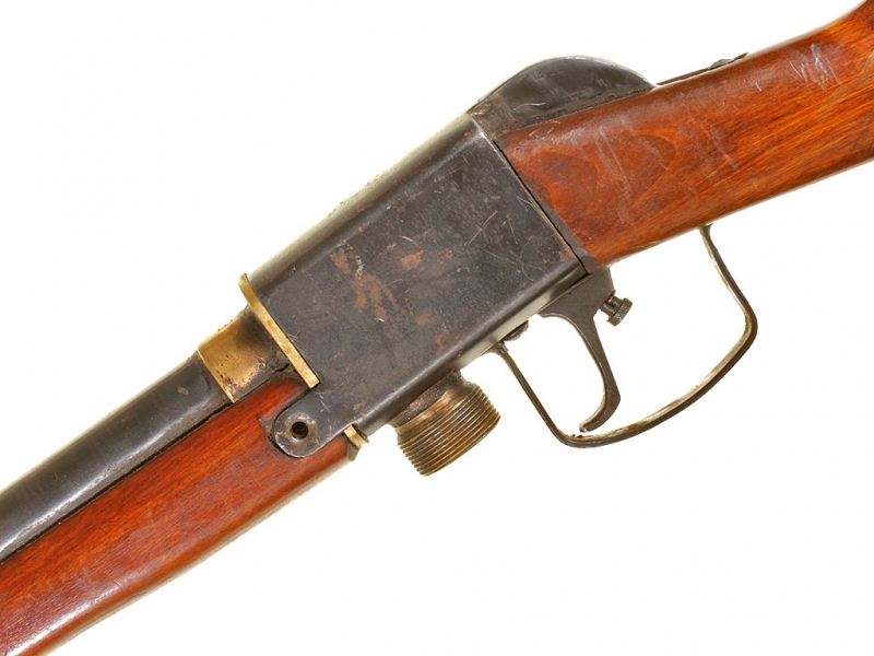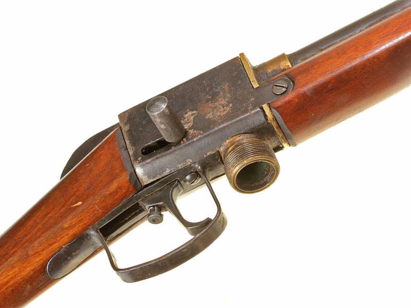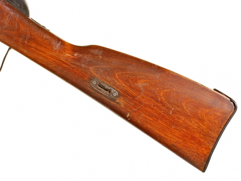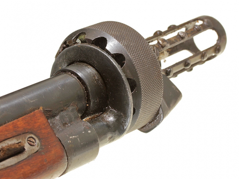 Ружье пехотного ранцевого огнемета РОКС-3, изготовленное в годы Великой Отечественной войны. Отличное складское состояние, на металлических частях - оригинальное воронение. Ложе от винтовки Мосина. На металлических частях и ложе присутствуют клейма военной приемки.