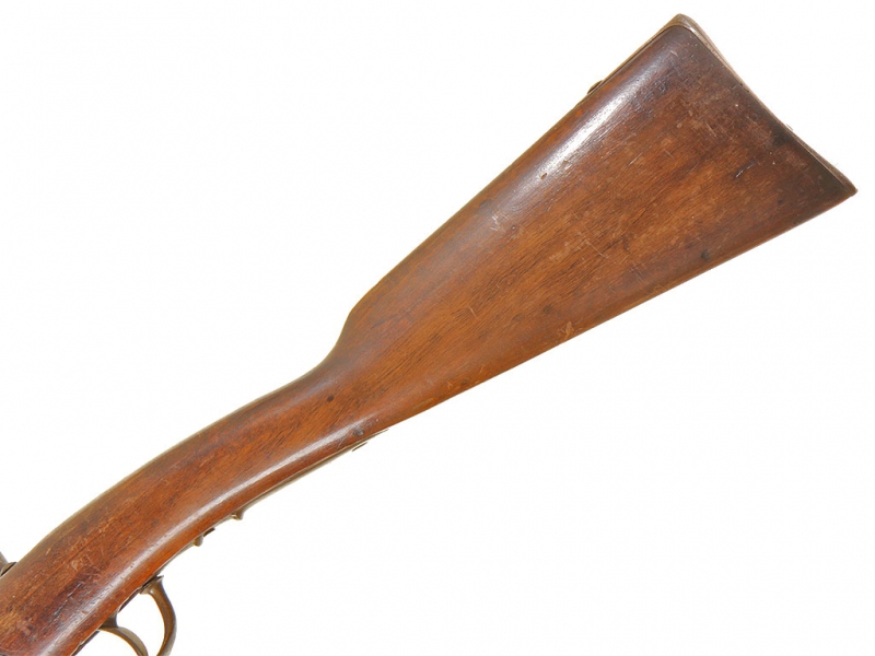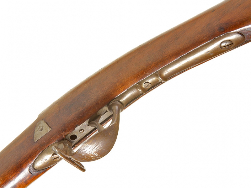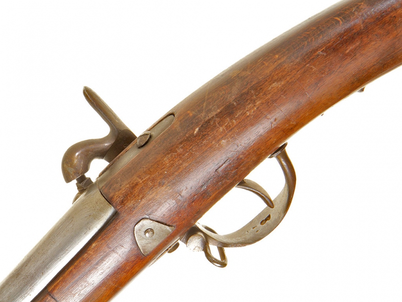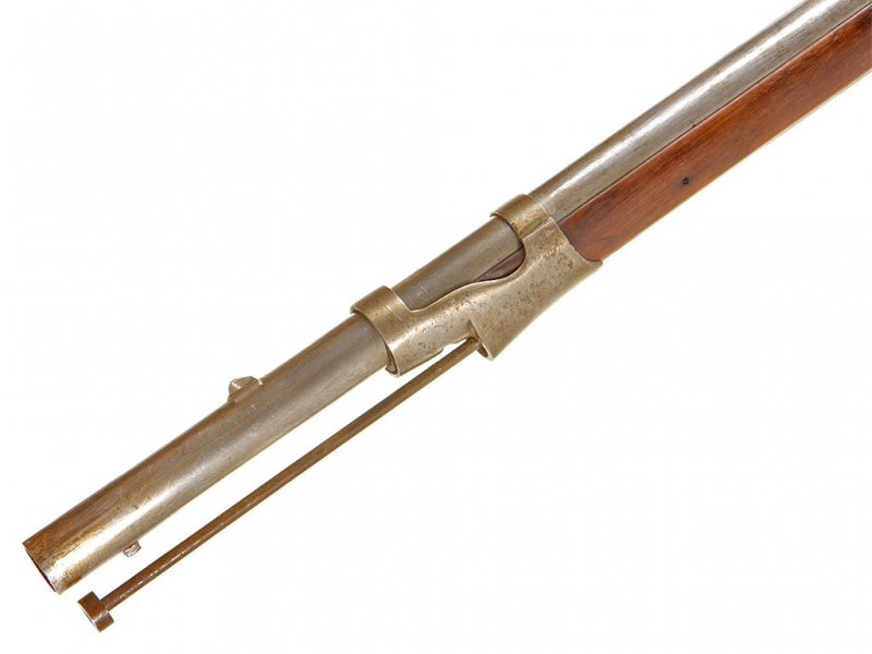 Пехотное гладкоствольное ружье, изготовленное в 1840-е годы по австрийскому военному заказу. На стволе имеется клеймо арсенала в Льеже. Капсюльный замок исправен, имеется клеймо австрийской примки в виде двуглавого орла с порядковым номером "870". Приклад и ложе из орехового дерева, на ложевых кольцах имеются приемочные клейма. Кольца стальные. На сверхней части стального затыльника имеется клеймо подразделения: "95 R.E.". Трехгранный игольчатый штык в комплекте.