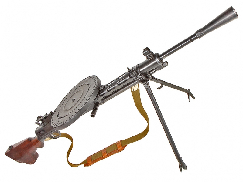 Ручной пулемет ДП (Дегтярева, пехотный) был одним из первых образцов стрелкового оружия, созданного при Советской власти. Его сконструировал известный советский оружейник Василий Алексеевич Дегтярев (1880-1949), а в 1927 г. пулемет Дегтярева был уже принят на вооружение. К началу Отечественной войны было выпущено более 110 тыс. пулеметов.