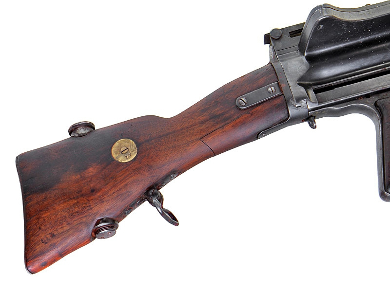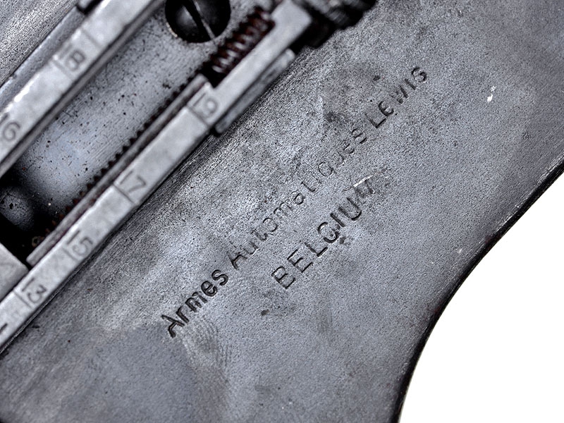 Ручной пулемет Льюис образца 1913 года в очень хорошем состоянии. Имеется масса клейм военной приемки, бельгийские клейма, представленный экземпляр модели Mk III изготовлен в 1917 году.