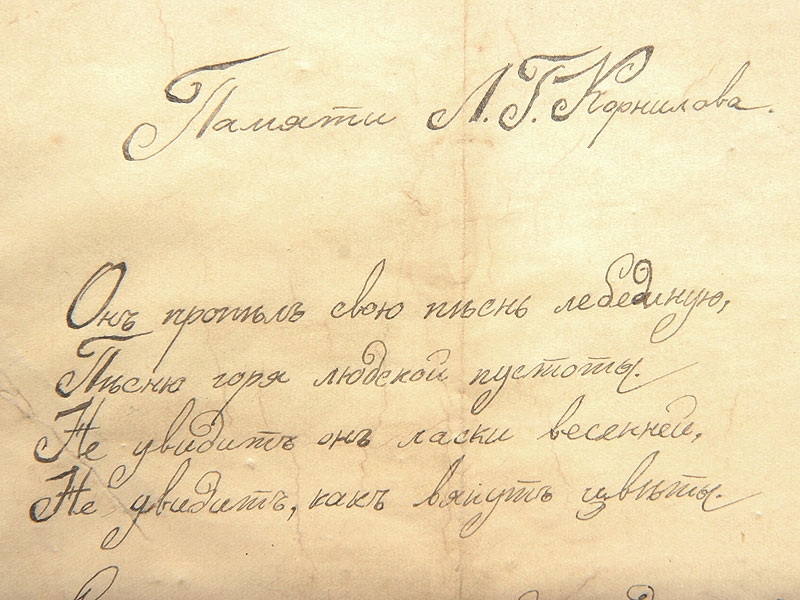 |Рукописное стихотворение "Памяти Л.Г.Корнилова", Россия