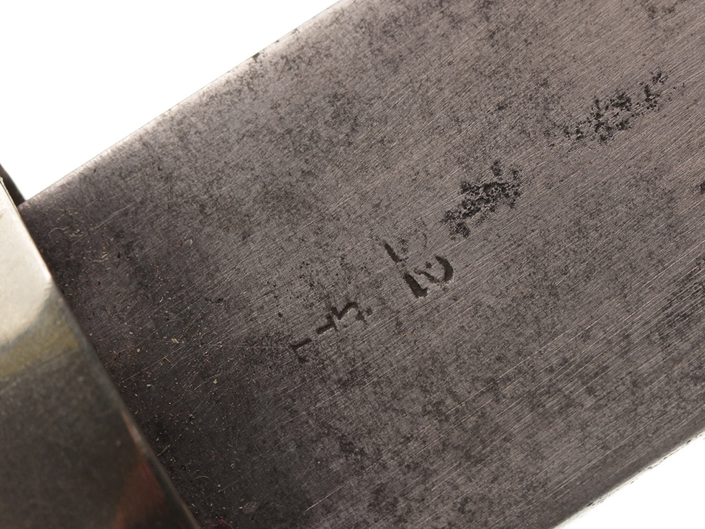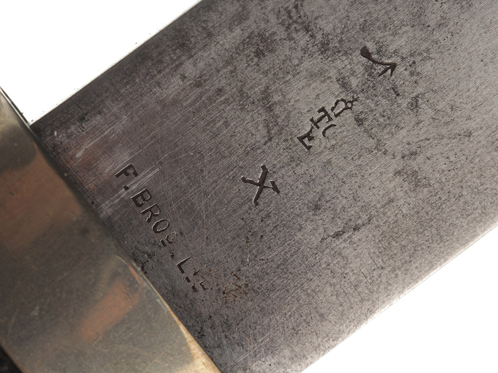 Клинок прямой, однолезвийный (боевой конец двулезвийный), без долов. У основания клинка имеется клеймо изготовителя "F.Bros. Ltd" и приемочные клейма.