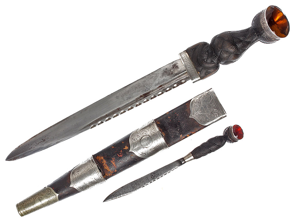 |Шотландский полковой кинжал - дирк с серебряным прибором и памятной надписью, Великобритания