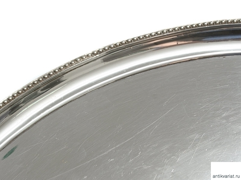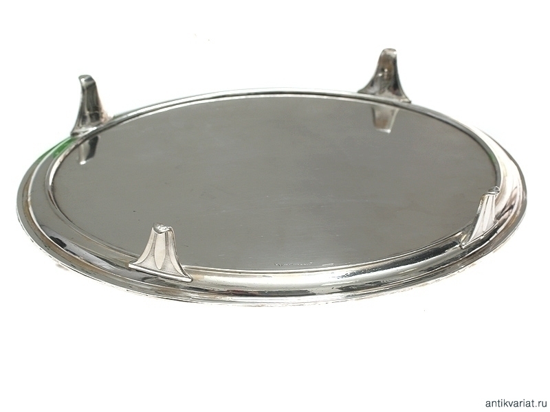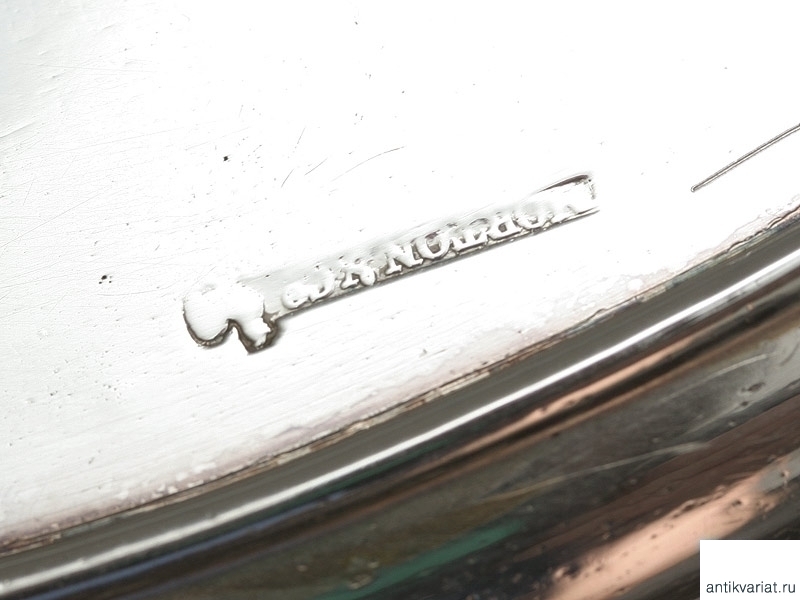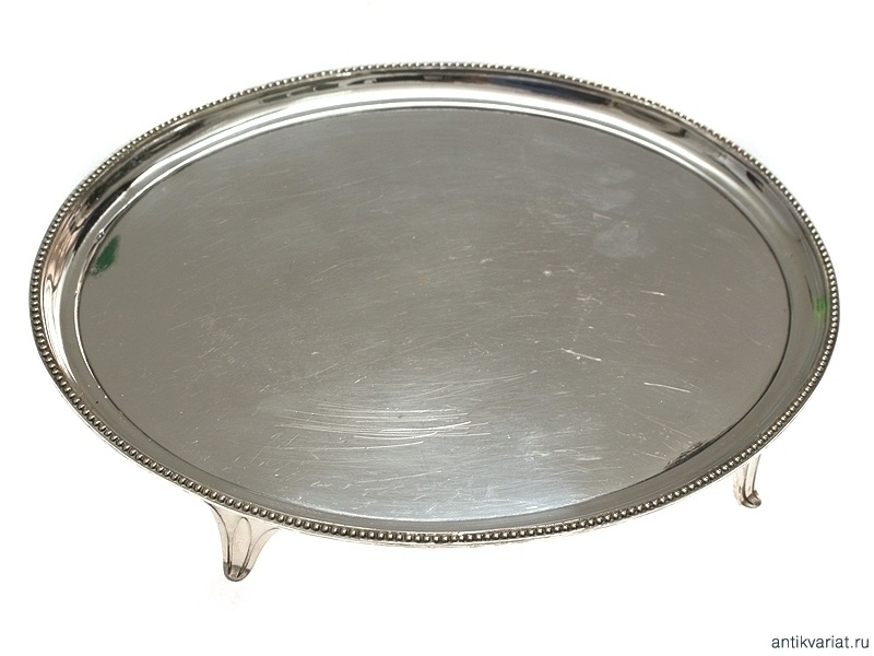 Массивная, весом около 200 граммов, овальная серебряная визитница с клеймом фирмы "Morton & Co". По ободку украшена рельефным точечным орнаментом. На четырех изогнутых ножках, изготовленных в виде лепестков. Отличное состояние, зеркальная полировка.