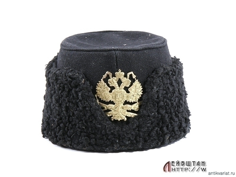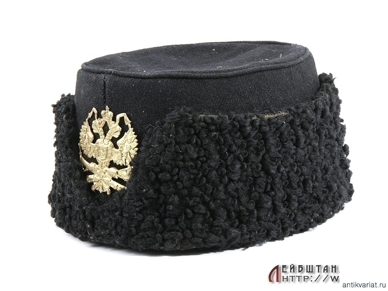 Шапка драгунского типа, для нижних чинов конной артиллерии образца 1881 года в очень хорошем состоянии. Суконный верх, черная каракулевая выпушка, латунный государственный герб на пушках.