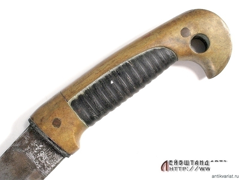 Ножны деревянные, обтянутые черной кожей. Прибор латунный, состоит из устья, двух гаек с кольцами для подвешивания к портупее и наконечника.