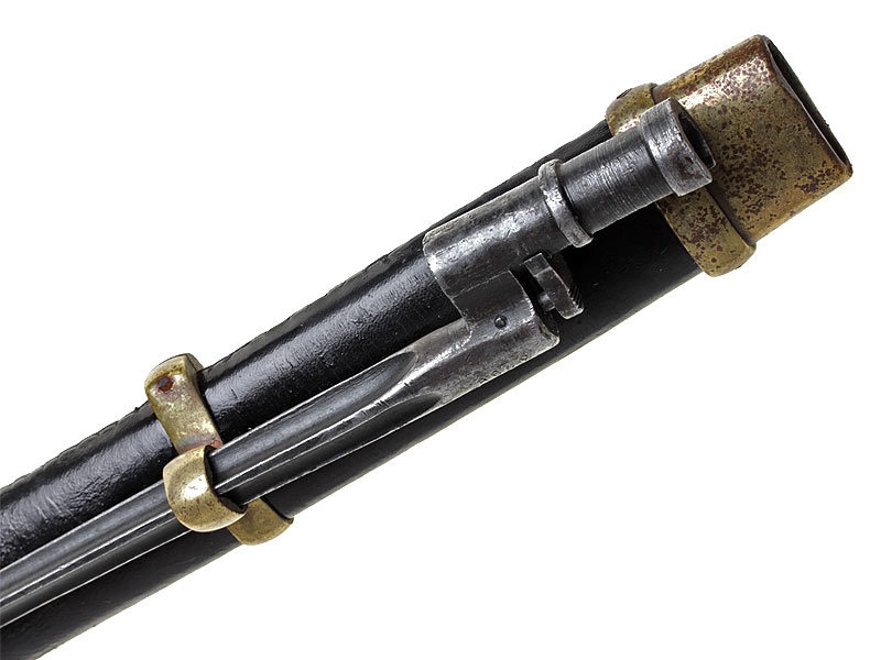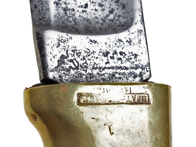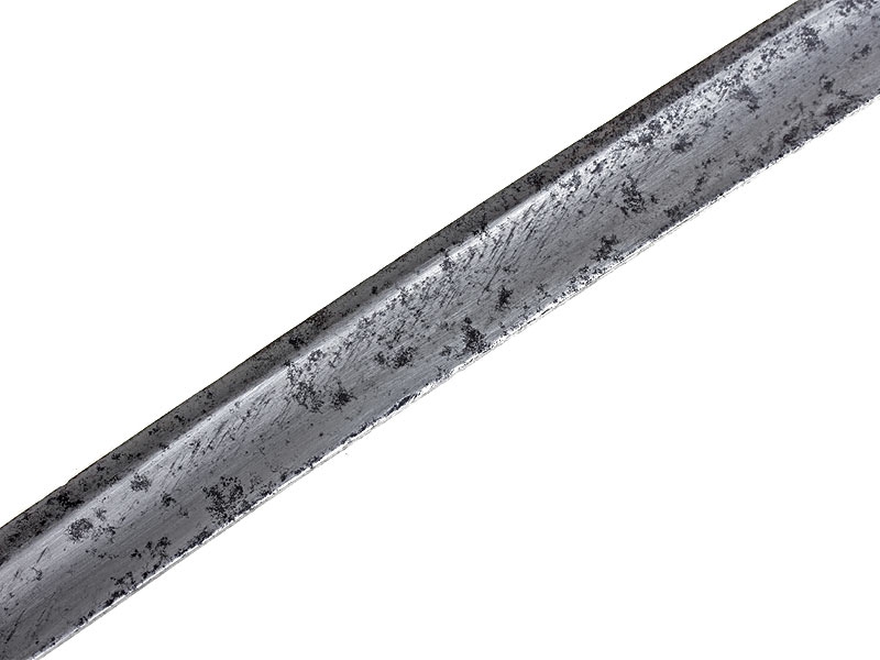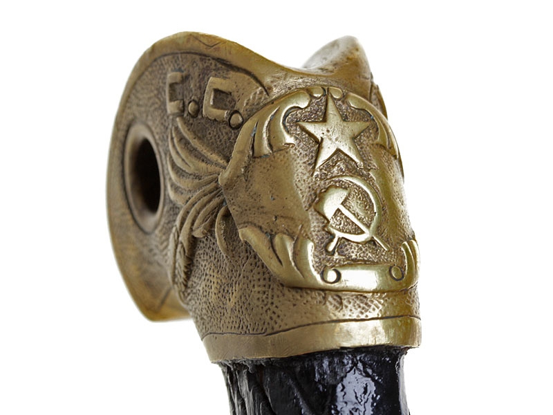 Шашка кавалерийская для красноармейцев и младших командиров выпуска 1928 года. Клинок с незначительными поверхностными повреждениями от коррозии, у основания частично сохранилось клеймо Златоустовской фабрики с изображением серпа и молота и годом выпуска; с оборотной стороны имеются армейские испытательные и приемочные клейма. Рукоять деревянная ( черен - современного изготовления), с латунными навершием и втулкой. Навершие украшено изображением рельефным серпа и молота с надписью "С.С.С.Р.". Ножны деревянные, грунтованные, с дополнительным креплением для штыка к винтовке Мосина. Основа ножен - современного изготовления, со старым латунным прибором. Штык в комплекте.
