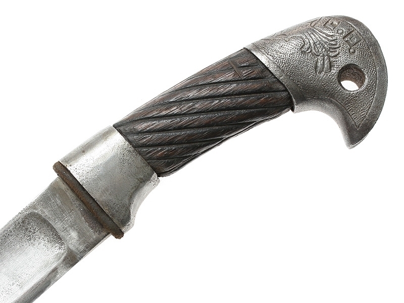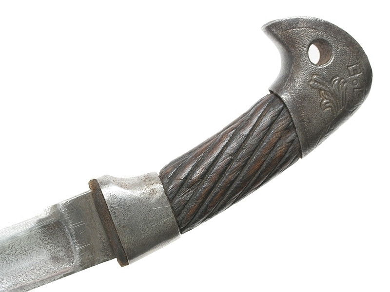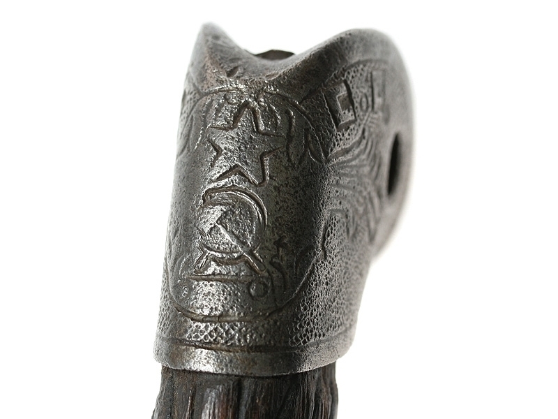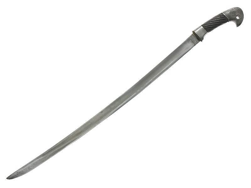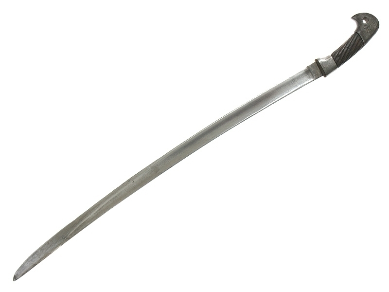 Шашка кавалерийская для Рабоче-Крестьянской Милиции НКВД довоенного выпуска. Клинок с незначительными следами коррозии, клейма не сохранились. Рукоять деревянная, с латунными навершием и втулкой. Навершие украшено изображением серпа и молота с надписью "С.С.С.Р.". Ножны отсутствуют. Все металлические элементы рукояти - никелированные.
