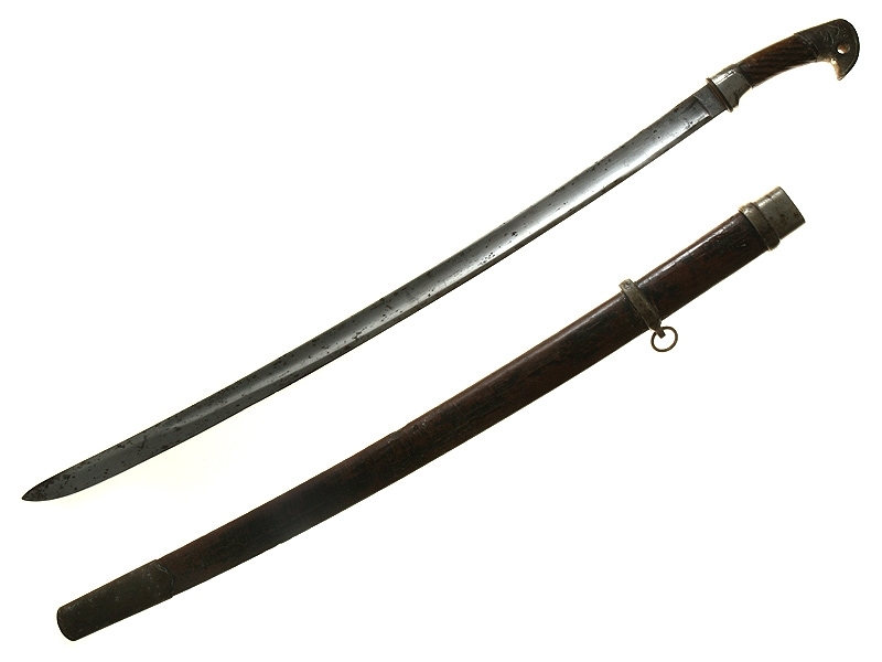 Шашка кавалерийская для командного и начальствующего состава с никелированным прибором, положенным по форме сотрудникам Рабоче-Крестьянской Милиции НКВД. Клинок с широкими долами, с клеймом Златоустовского инструментального завода, 1936 год. Ножны деревянные, грунтованные, с никелированным прибором. Покрытие на ножнах вытерто и вместо уставного черного приобрело коричневый цвет. Предмет в нетронутом состоянии.