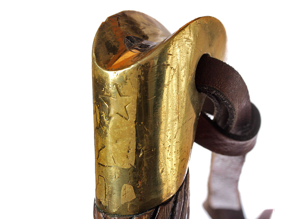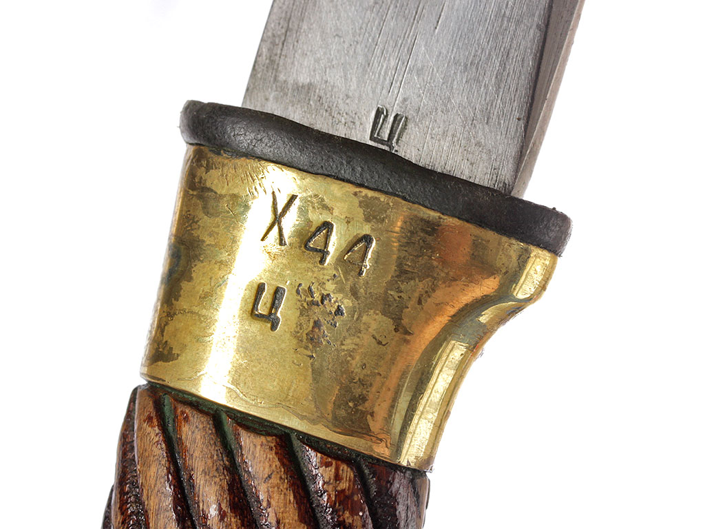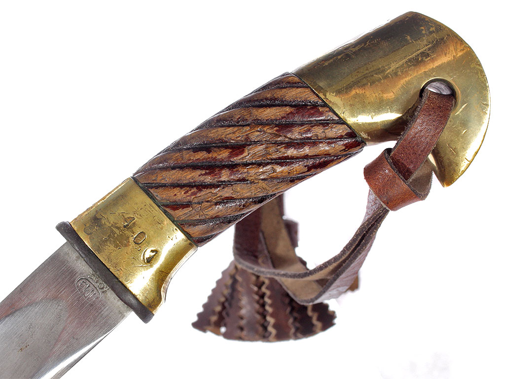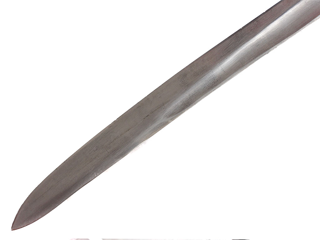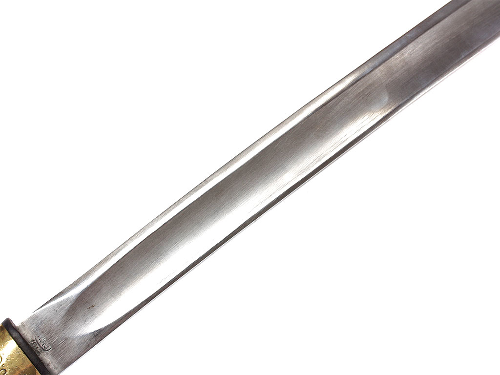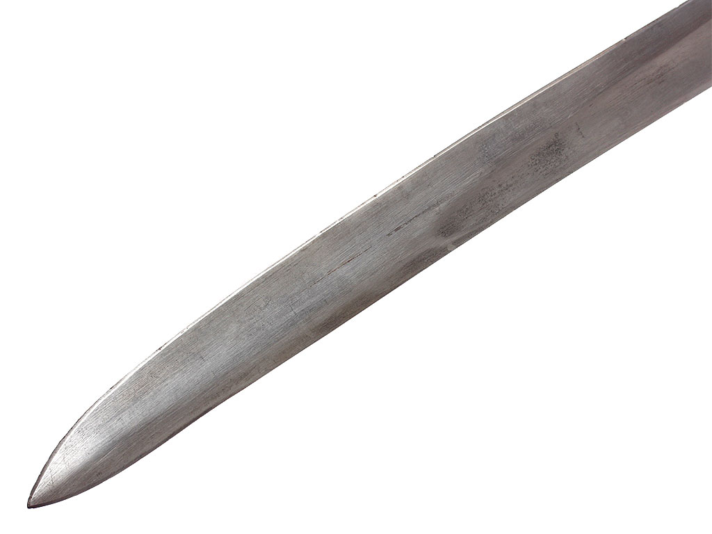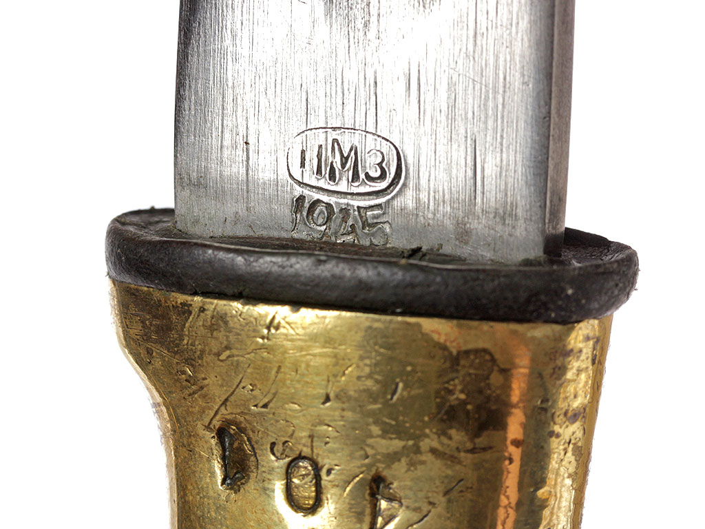 Шашка кавалерийская образца 1927 года, изготовленная в 1945 году. Клинок незначительной кривизны, с одним широким долом, у основания клеймо Ижевского механического завода (ИМЗ) с годом выпуска. Рукоять деревянная, с латунными навершием и втулкой. Навершие украшено изображением пятиконечной звезды. Ножны деревянные, грунтованные, выкрашенные в черный цвет, с латунным прибором (стальные устье ножен и башмак).