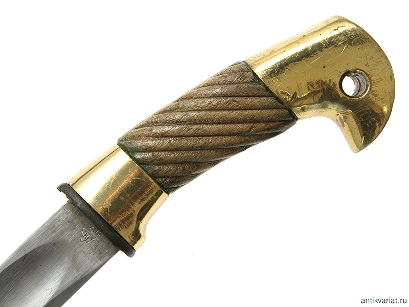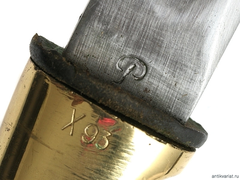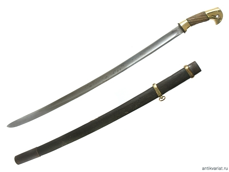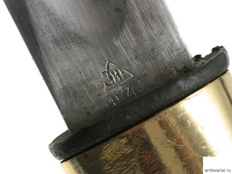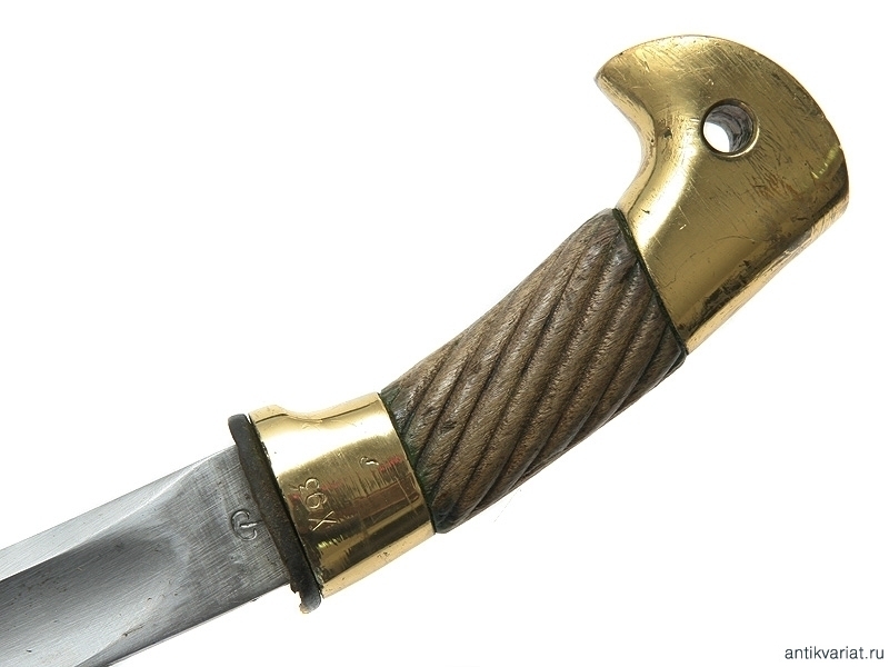 Шашка кавалерийская для красноармейцев и младших командиров выпуска 1943 года. Клинок в очень хорошей сохранности, у основания клеймо Златоустовского инструментального комбината с годом выпуска. Рукоять деревянная, с латунными навершием и втулкой. Навершие украшено рельефным изображением серпа и молота с надписью "С.С.С.Р.". Ножны деревянные, грунтованные. Очень хорошее состояние.