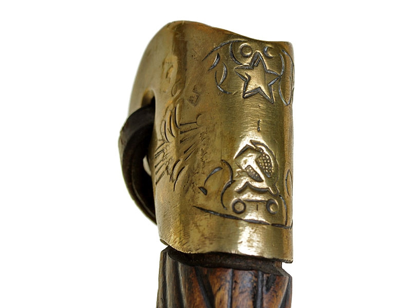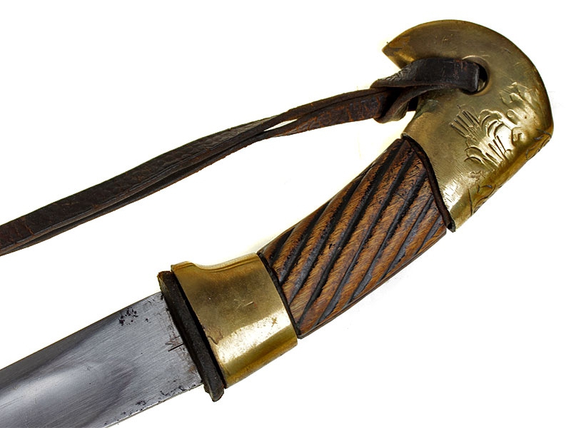 Шашка кавалерийская для красноармейцев и младших командиров выпуска 1941 года. У основания клинка - клеймо Златоустовского инструментального комбината с годом изготовления. Рукоять деревянная, с латунными навершием и втулкой. Ножны деревянные, грунтованные. Ножны в оригинальной грунтовке и красочном покрытии, ничего не реставрировалось и не ремонтировалось. Оригинальный темляк.