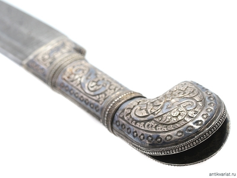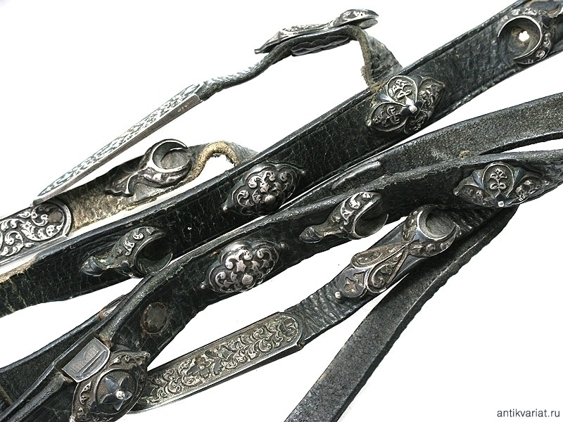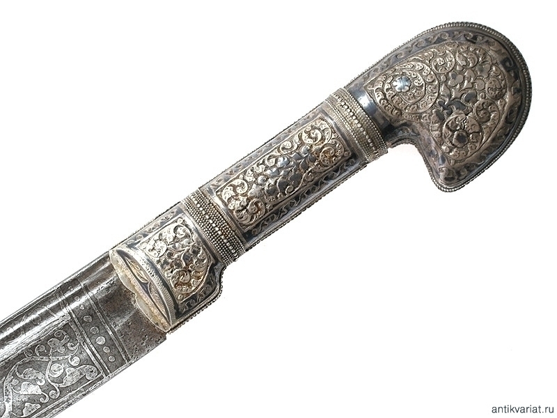 Рукоять шашки (как и прибор) датируется концом XIX - началом ХХ века. Сплошь обложена серебром, украшенным гравировкой и чернью. В орнаменте преобладают сложные растительные завитки. Без клейм. В труднодоступных для чистки местах имеются следы оригинального золочения.