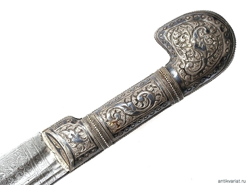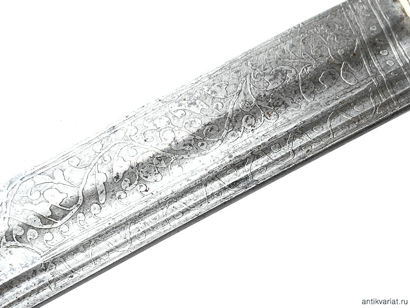 Кавказская шашка азиатского типа, изготовленная в конце XIXвека. Клинок с одним широким и двумя узкими долами, у основания с обеих сторон украшен травленым орнаментом. На конце клинка - незначительные следы коррозии.