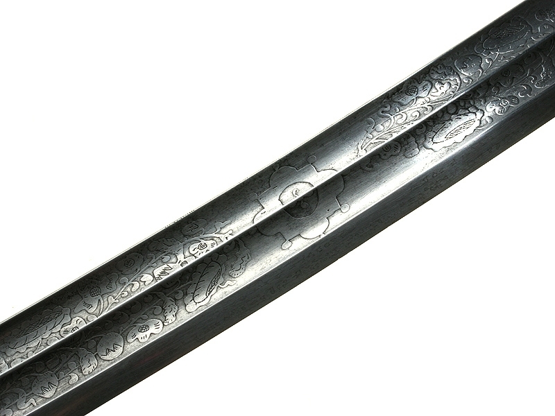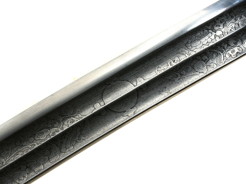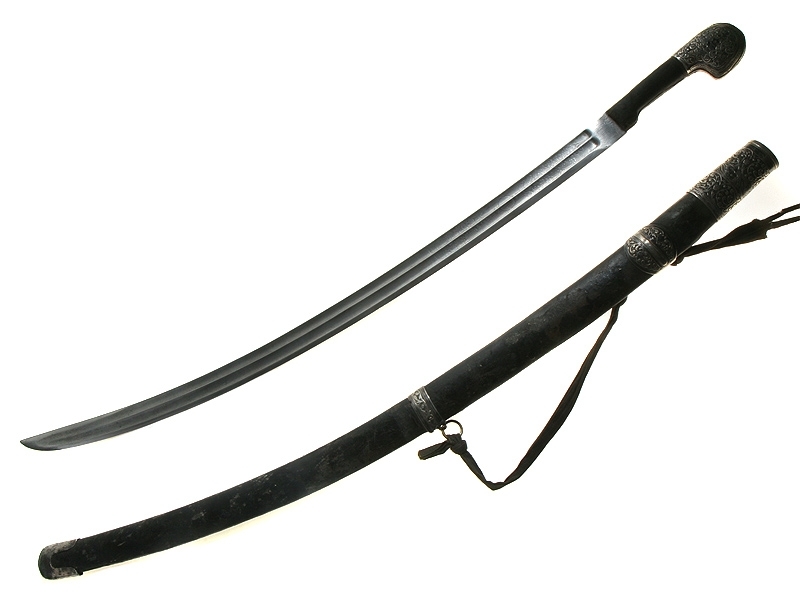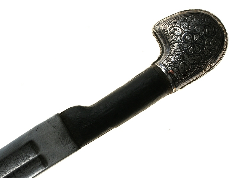 Кавказская шашка азиатского типа, изготовленная в конце XIX века. Клинок более ранний, европейского (вероятнее всего, германского) изготовления: может быть датирован концом XVIII - началом XIX века. С двумя долами, примерно на четверть украшен травленым растительным орнаментом.
