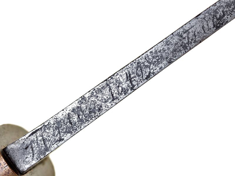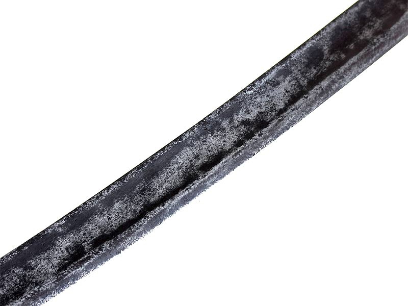 Шашка нижних чинов казачьего типа образца 1838 года - из ранних выпусков, с клинком тульской работы. На обухе клинка имеется гравированная надпись "Тула 1849 года". Рукоять деревянная, обтянутая по тонким поперечным желобкам черной кожей. Прибор гарды бронзовый, без клейм. Ножны отсутствуют.