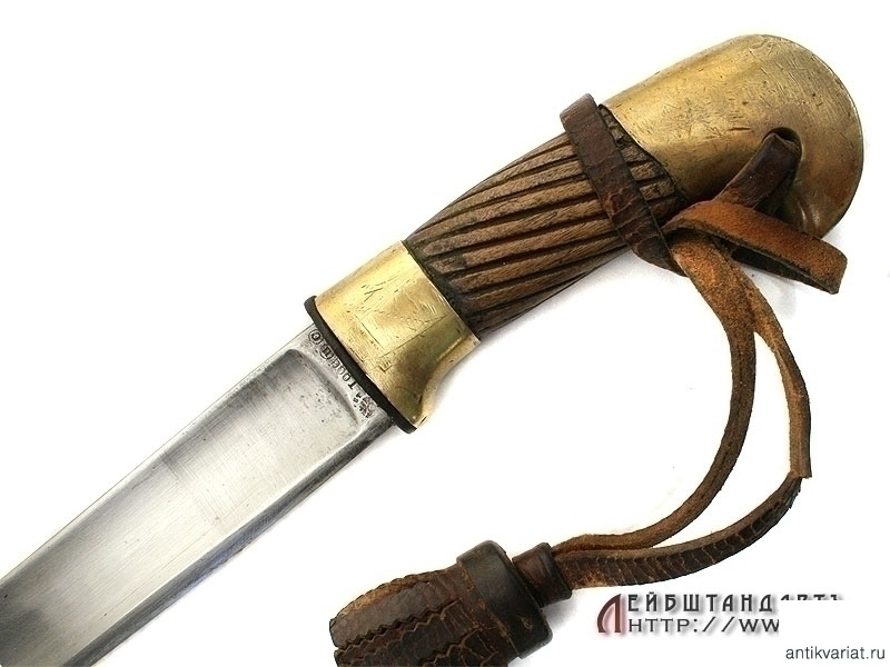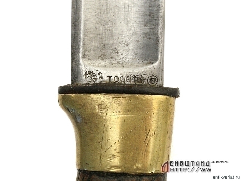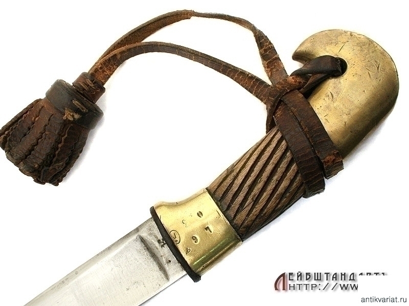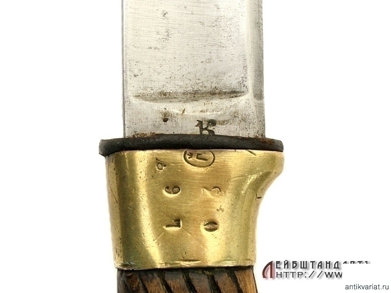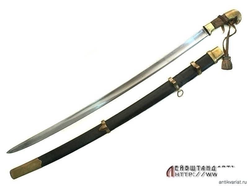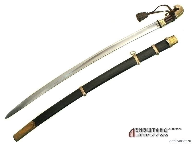Ножны деревянные, обтянутые дерматином, грунтованные, выкрашенные в черный цвет. Латунный прибор снабжен дополнительным крепежом под штык.
