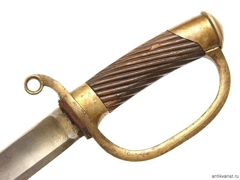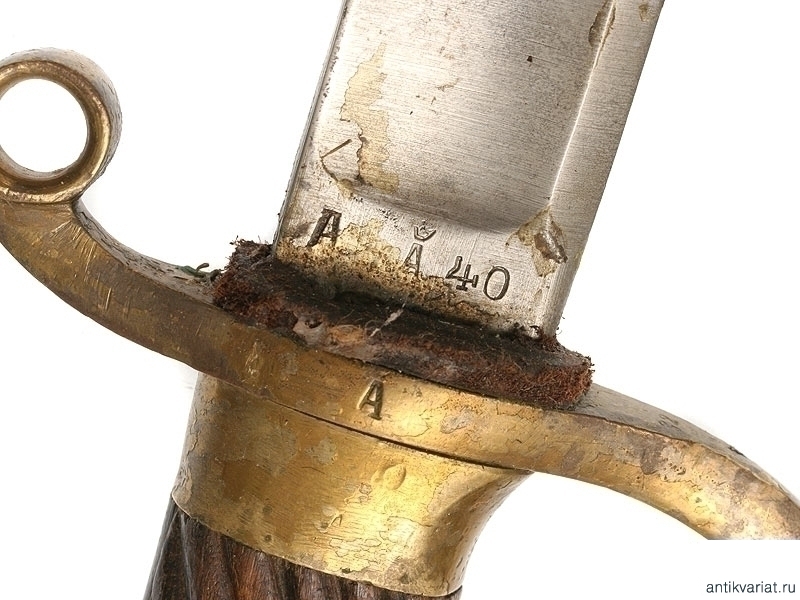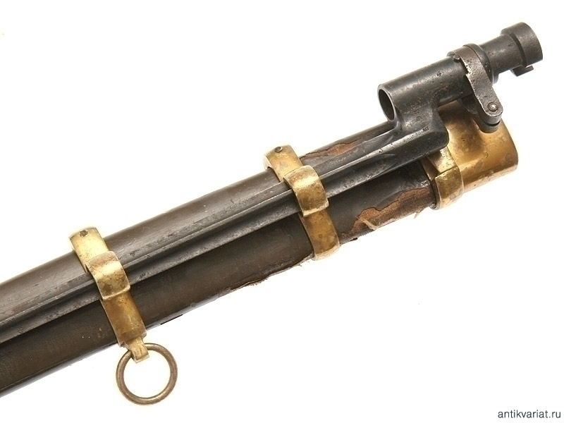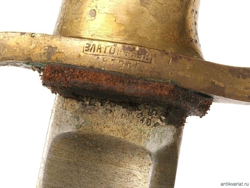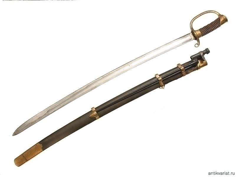 Шашка драгунского типа образца 1881 года в полной комплектации. Клинок с одним широким долом, у основания находится клеймо Златоустовской оружейной фабрики с годом выпуска - 1917. Клинок практически не затачивался. Рукоять деревянная, с наклонными продольными желобками. Прибор гарды бронзовый, на дужке имеется клеймо Златоустовской оружейной фабрики с годом и клеймами военной приемки. Ножны деревянные, в оригинальном черном красочном покрытии. Прибор ножен латунный, с креплением под четырехгранный штык к винтовке системы Мосина. Сам штык также превосходно сохранился. На приборе рукояти сохранились следы лакового покрытия, нанесенного прежним владельцем.