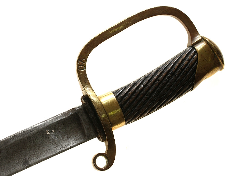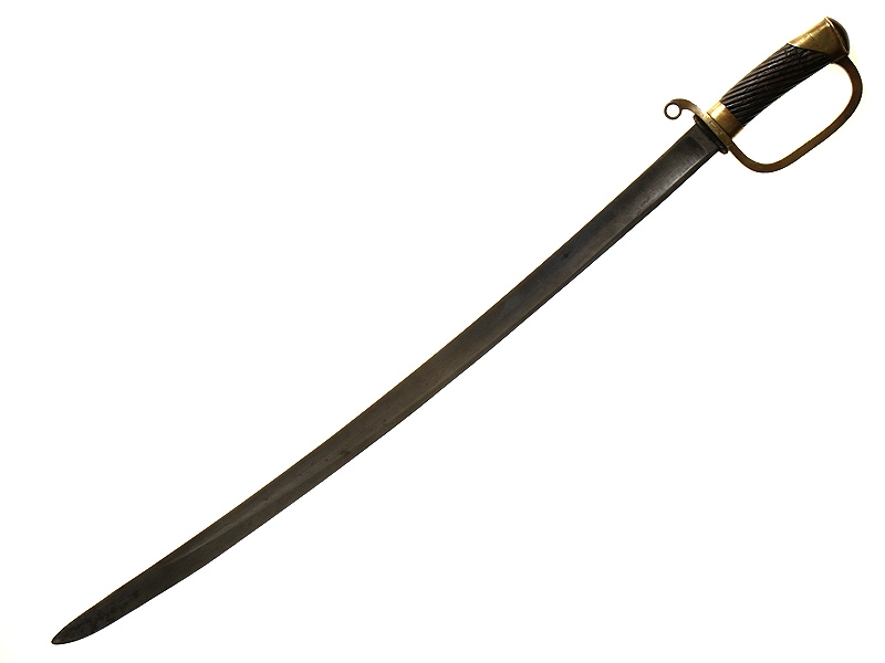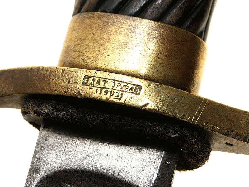 Шашка нижних чинов драгунского типа образца 1881 года. Клинок без клейм. Рукоять деревянная, с наклонными продольными желобками. Прибор гарды бронзовый, с клеймом Златоустовской оружейной фабрики и годом выпуска - 1903. Ножны отсутствуют.
