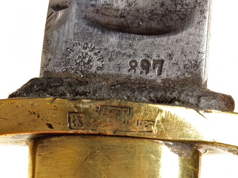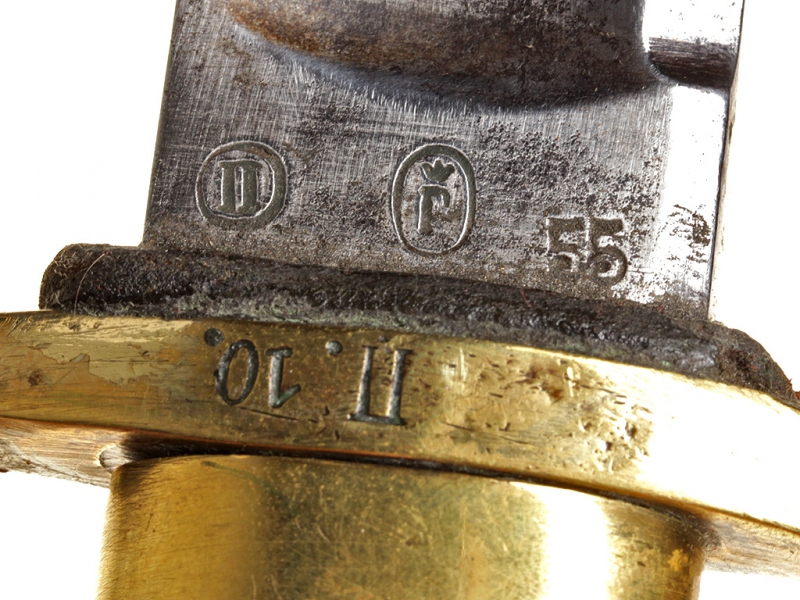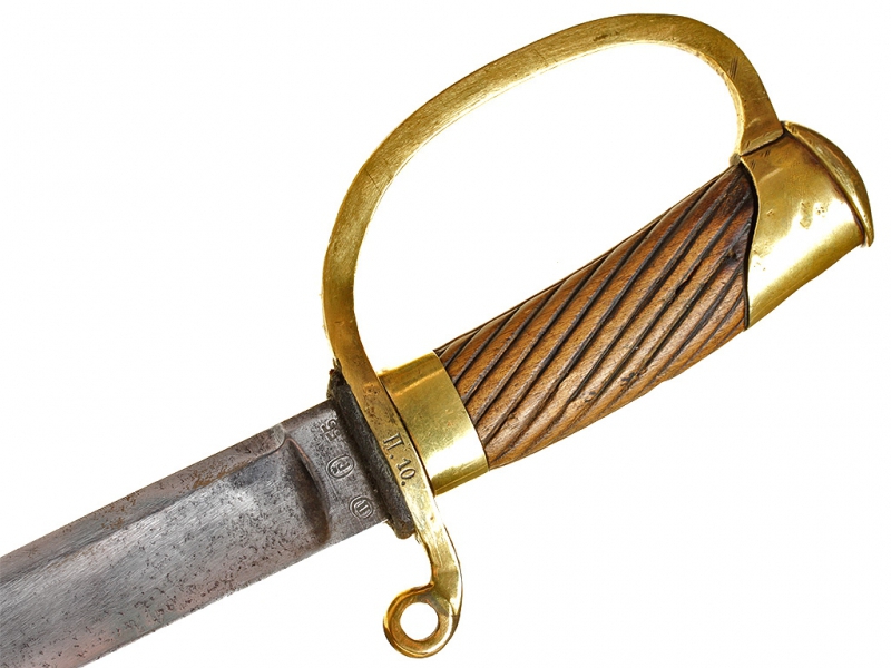 Шашка нижних чинов драгунского типа образца 1881 года. Клинок с клеймом Златоустовской оружейной фабрики у основания, выпуска 1897 года, имеются клейма военной приемки. Рукоять деревянная, с наклонными продольными желобками. Прибор гарды бронзовый, с клеймами военной приемки и клеймами полковой принадлежности "П. 10". Ножны деревянные, обтянутые черной кожей, с бронзовым прибором.